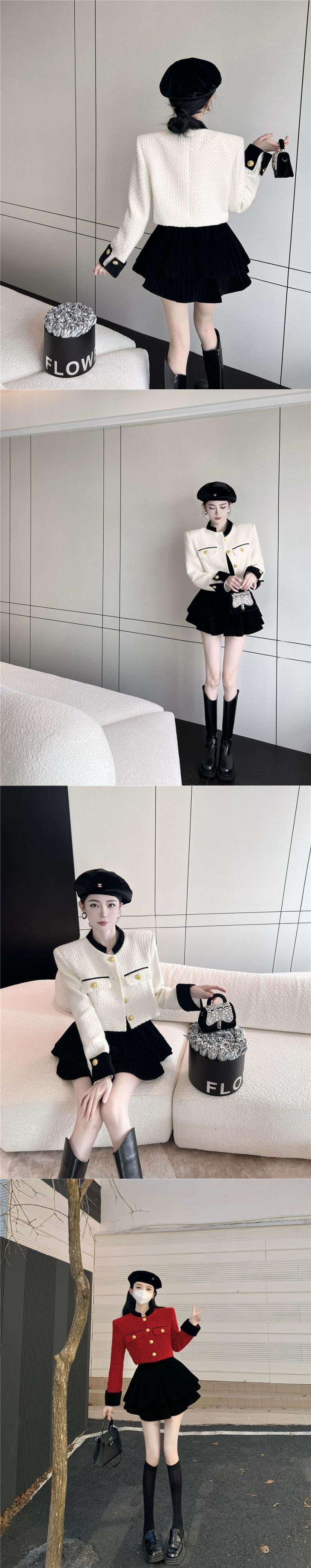 今年の人気のファッションスーツ、気質ショートコート、ベルベットのハーフレングスケーキスカート、2点セット、女性の秋冬の新しいスタイル オータム 秋物 ウィンター 冬物 nana12145072091 | modepoisson