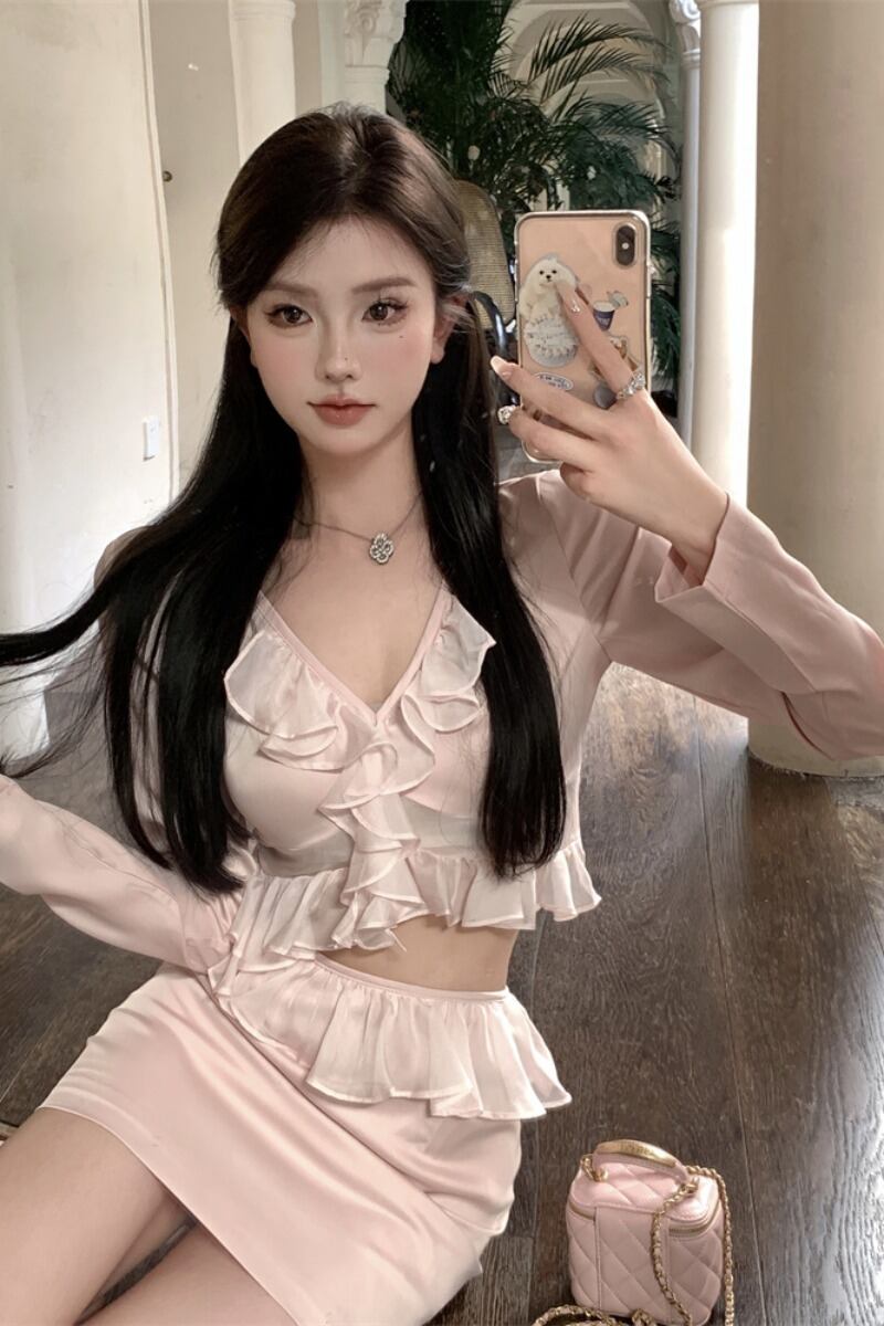 -初秋カジュアルファッションスーツレディース、ショートスリムトップ、ハイウエストスカート、新しい気質ツーピースセット ハイウェスト オータム 秋物 nana27186558332 | modepoisson