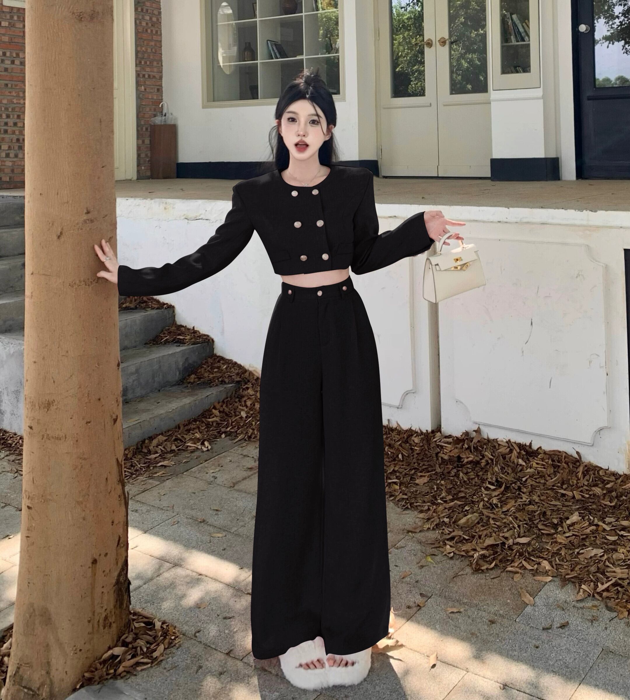 美乳ふうふスーツ女性の秋の小さな香りのスタイルショートコートハイウエストドレープワイドレッグパンツ新しいファッションツーピースセット ハイウェスト オータム 秋物 ワイドパンツ nana64317985260 | modepoisson