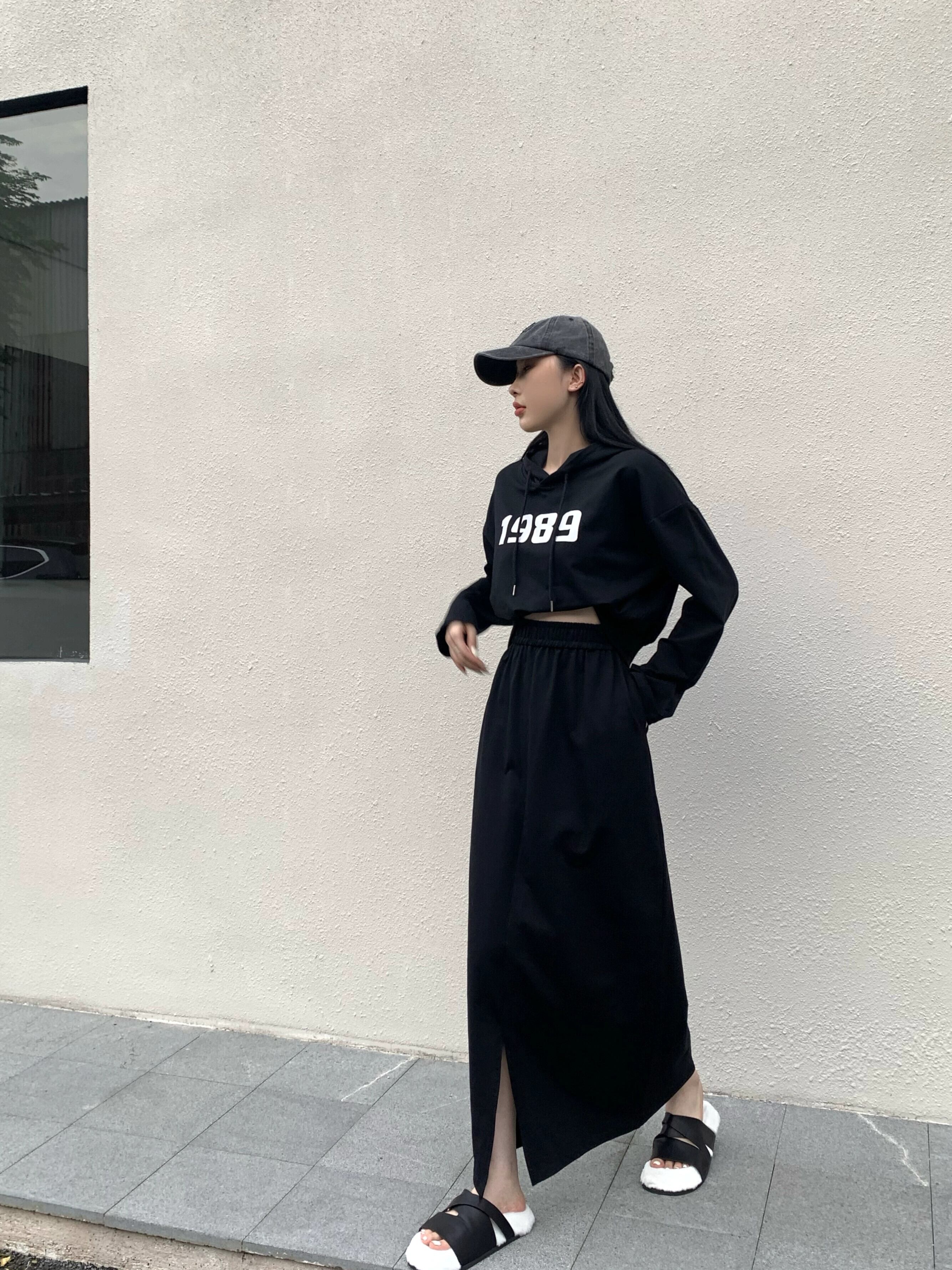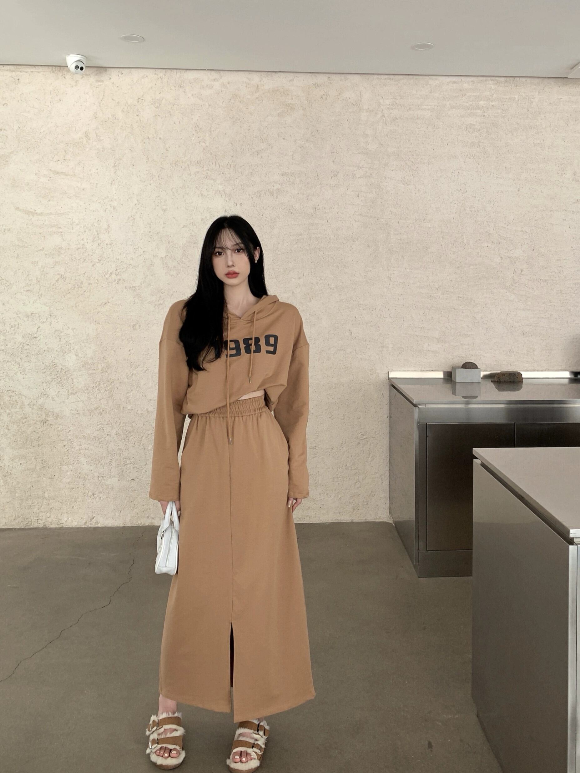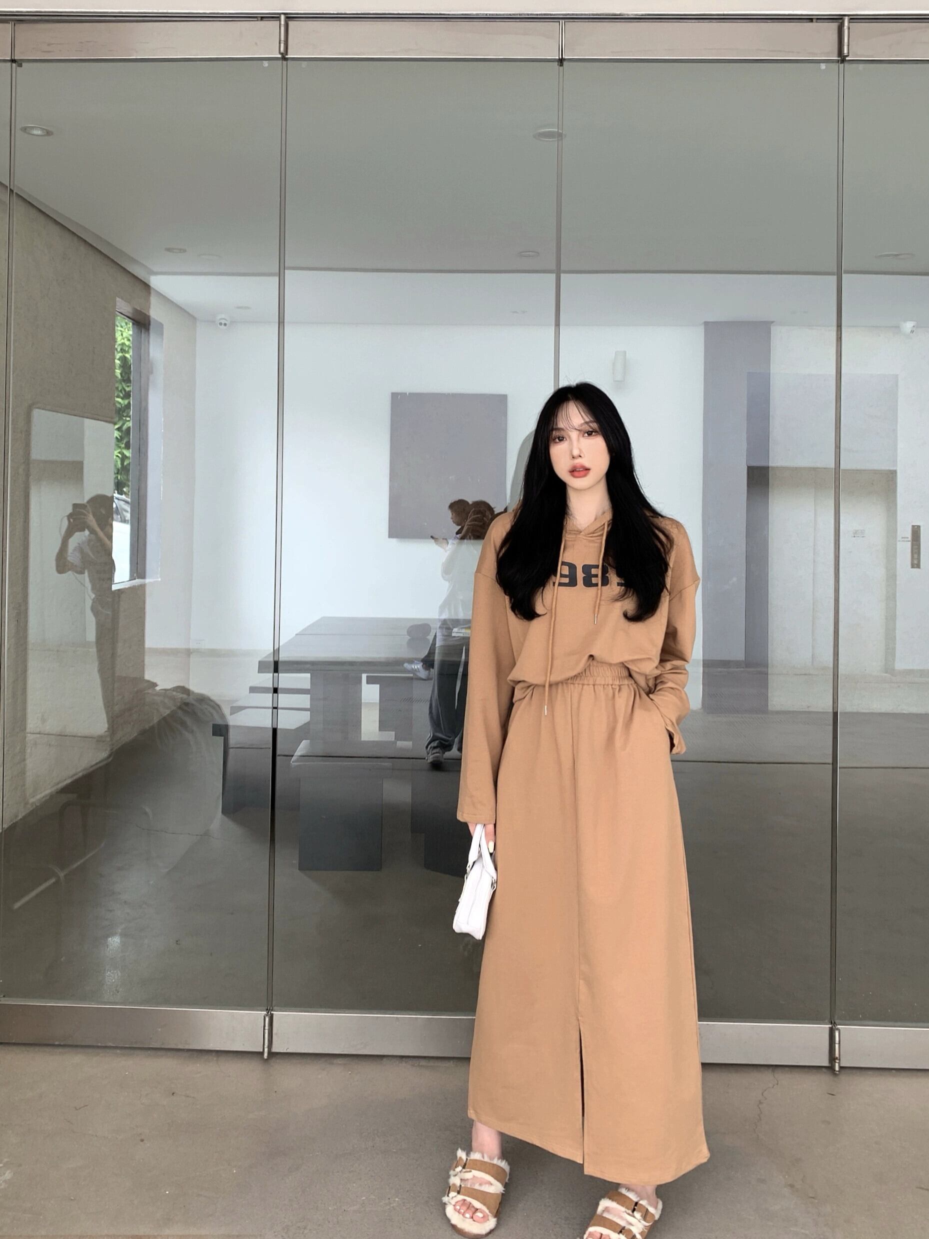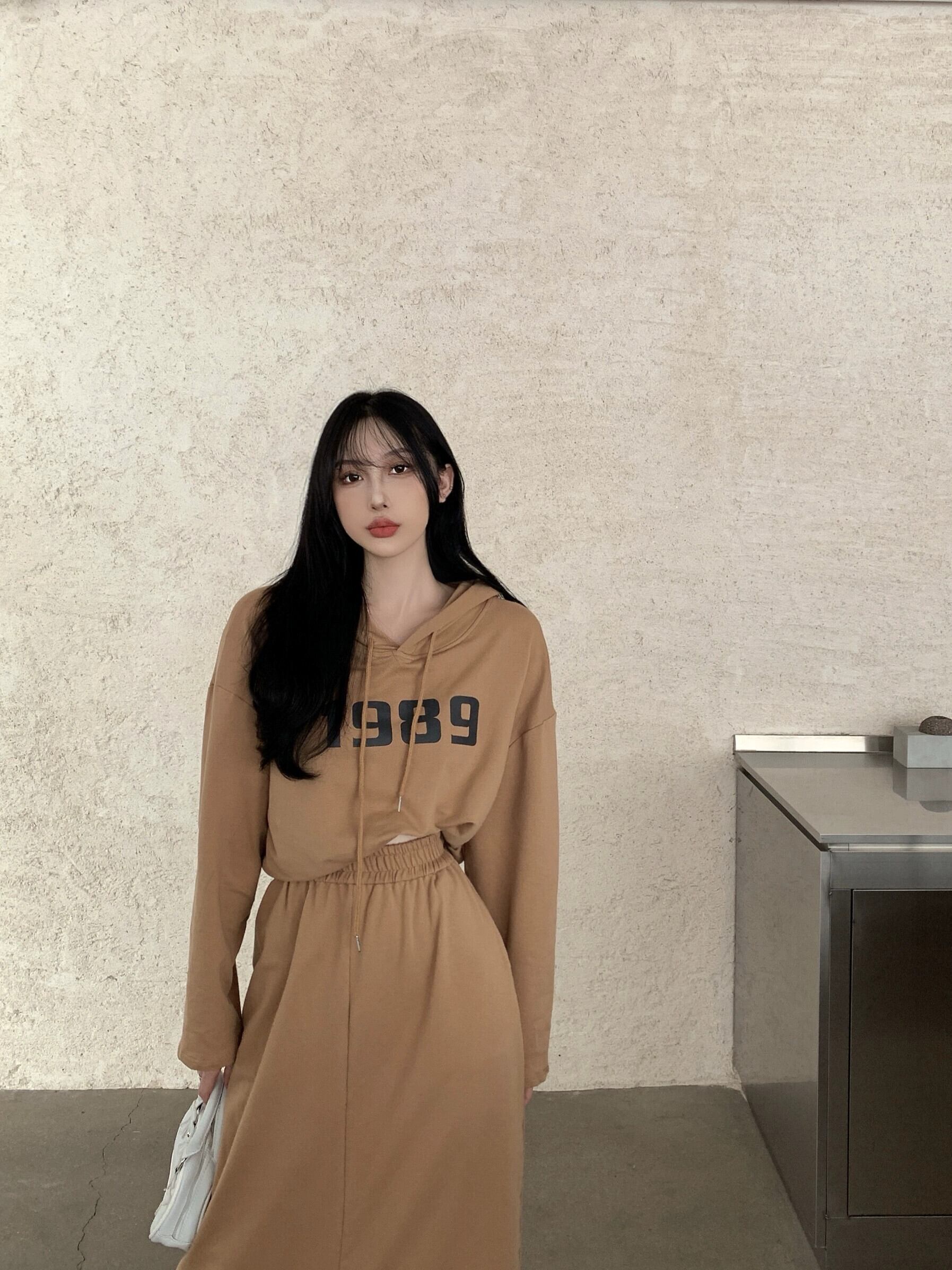 フランスの怠惰なスタイルファッショナブルな多用途カジュアルスリムフード付きトップハイウエストファッションスカートスーツ女性の新しい秋のスタイル ハイウェスト オータム 秋物 nana75981683646 | modepoisson