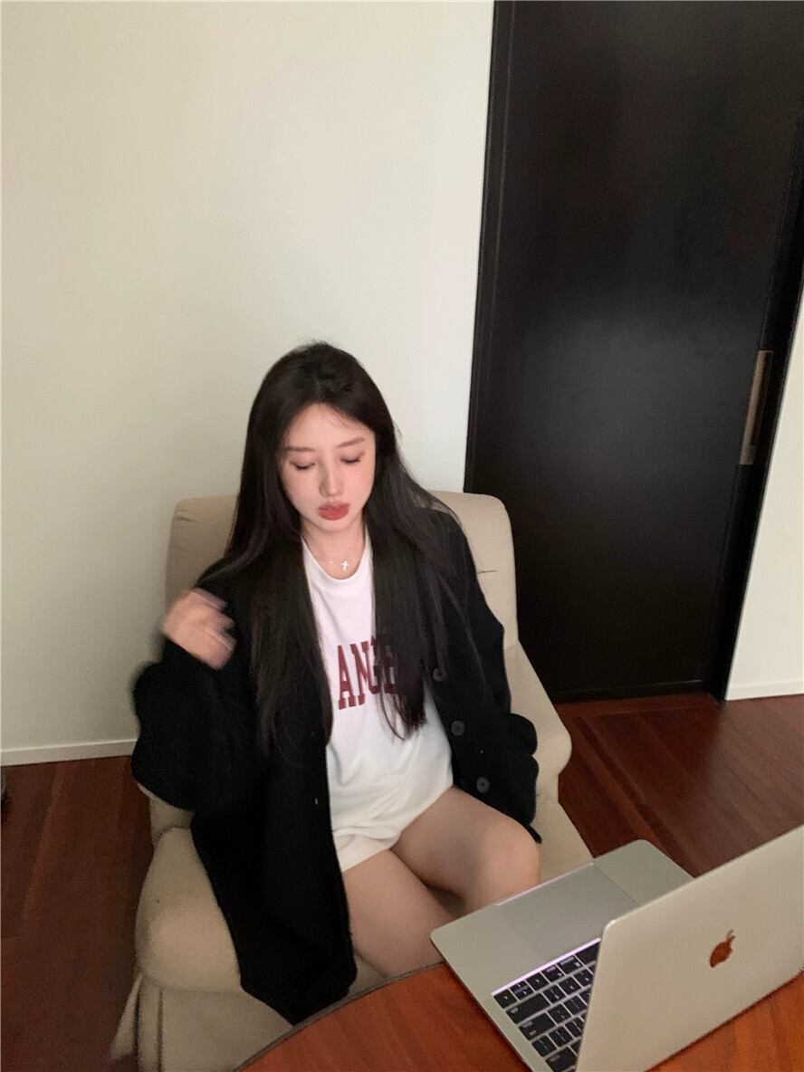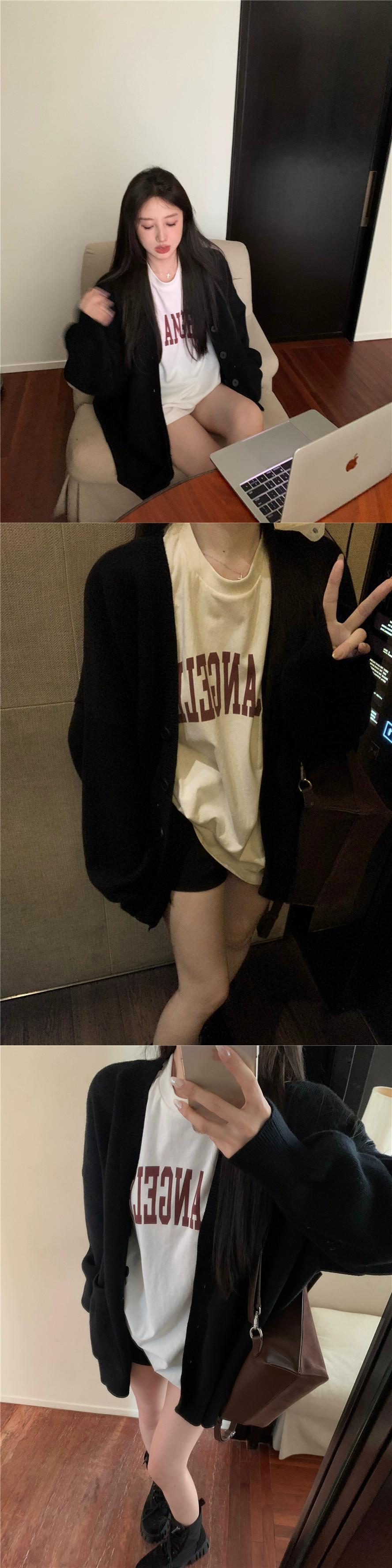 スタイルのルーズでファッショナブルなセーター、内側に文字 T シャツが付いたカーディガン ジャケット、怠惰なスタイルのカジュアル ツーピース スーツの女性 Tシャツ nana92534025449 | modepoisson