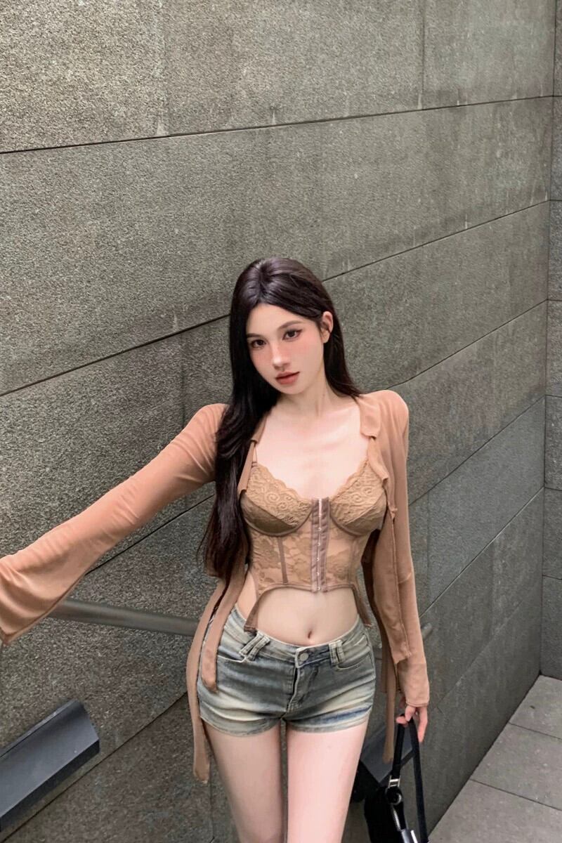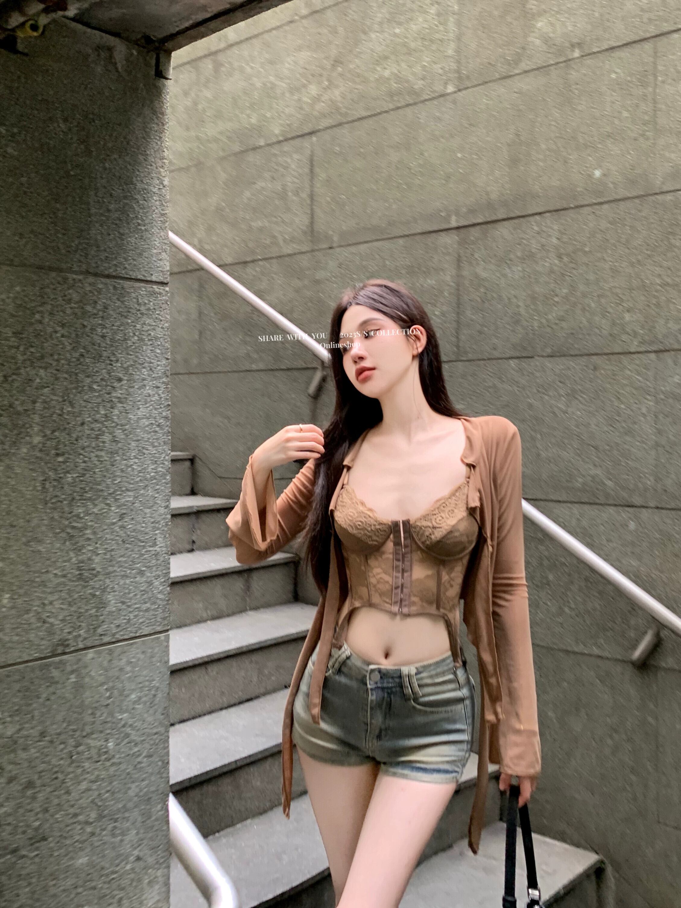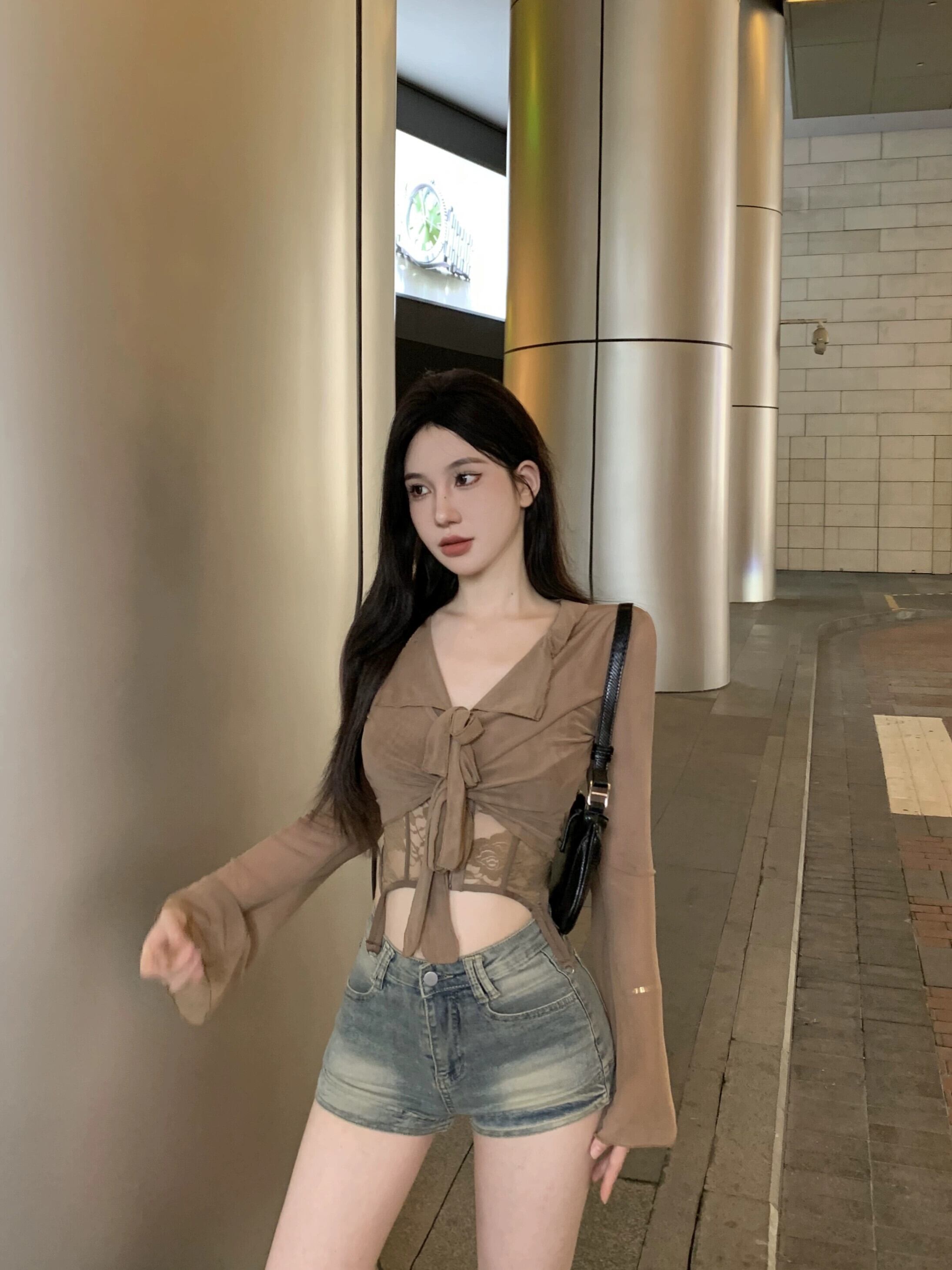 アメリカの純粋な欲望スタイルのセクシーなレーススリムフィットスプライシングサスペンダー長袖ストラップカーディガンツーピーススーツ女性初秋 ロング オータム 秋物 ピュア nana71013089626 | modepoisson