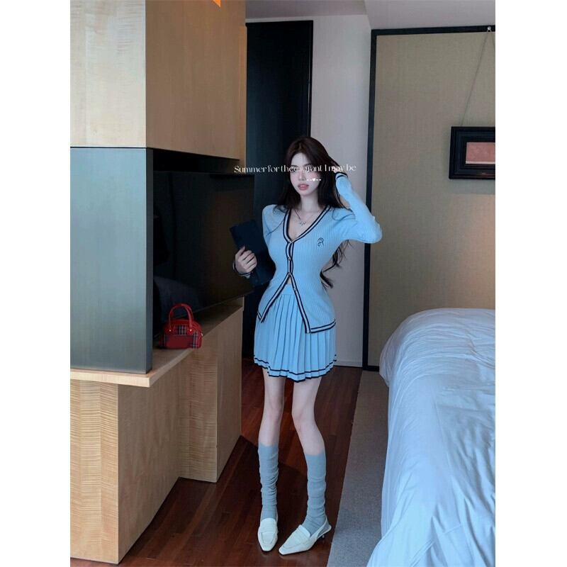 色:ライトブルーのトップ,ライトブルーのスカート,グレートップ,グレースカート,ブラックトップ,黒スカート