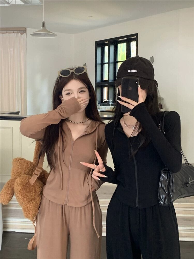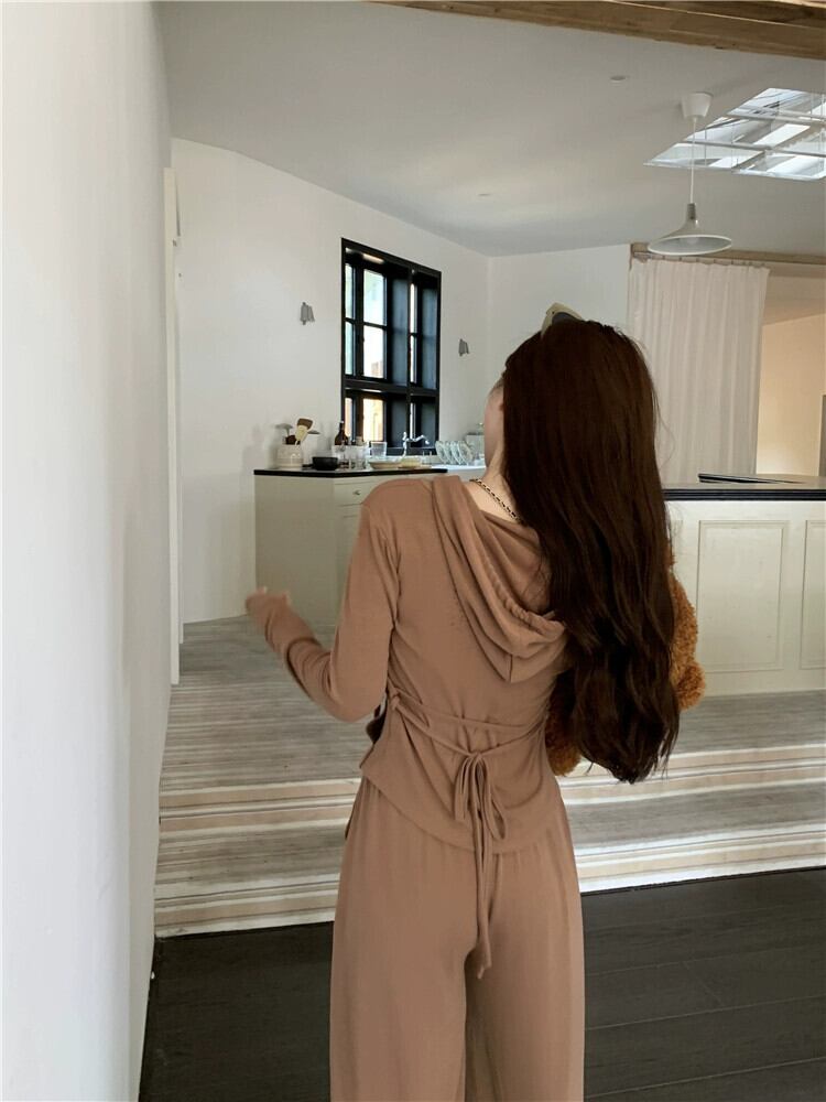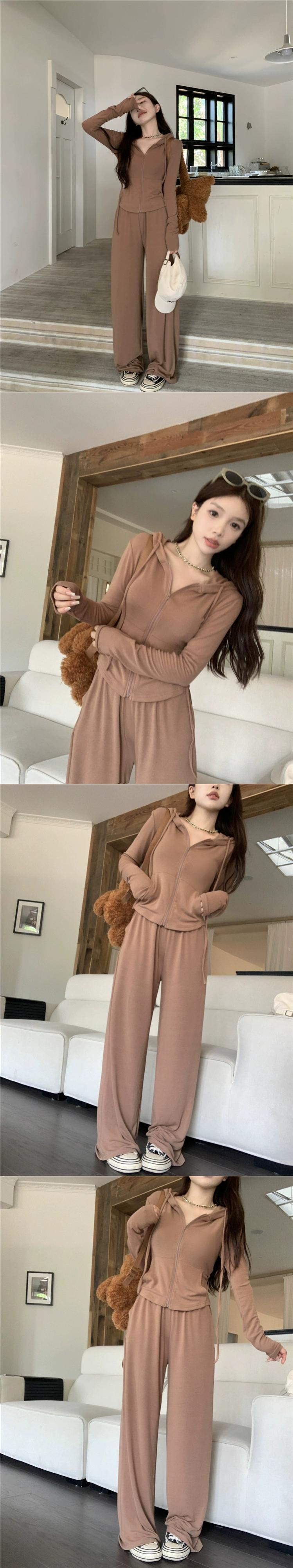 色:ブラウントップ,ブラックトップ,ブラウンパンツ,黒いズボン