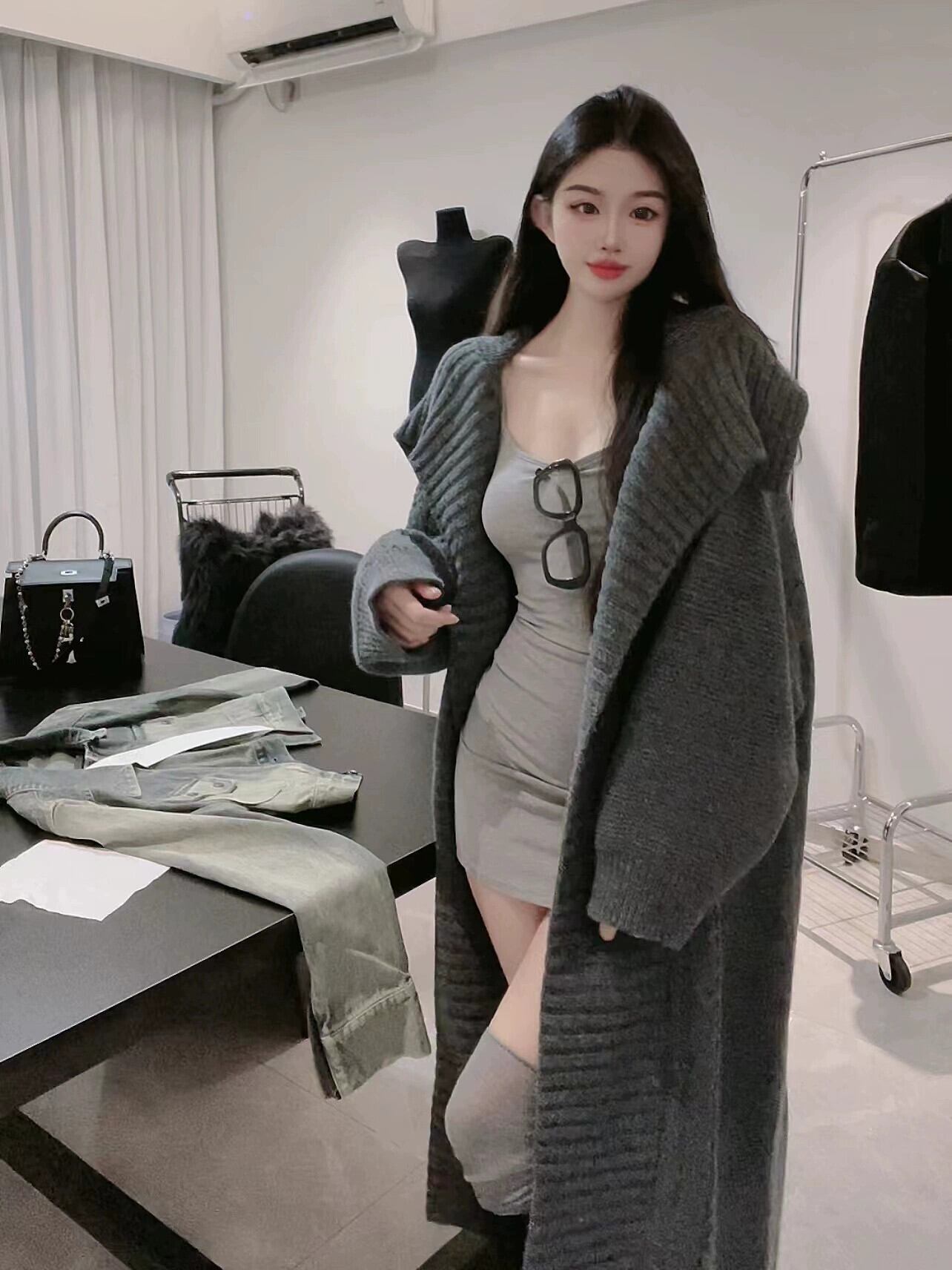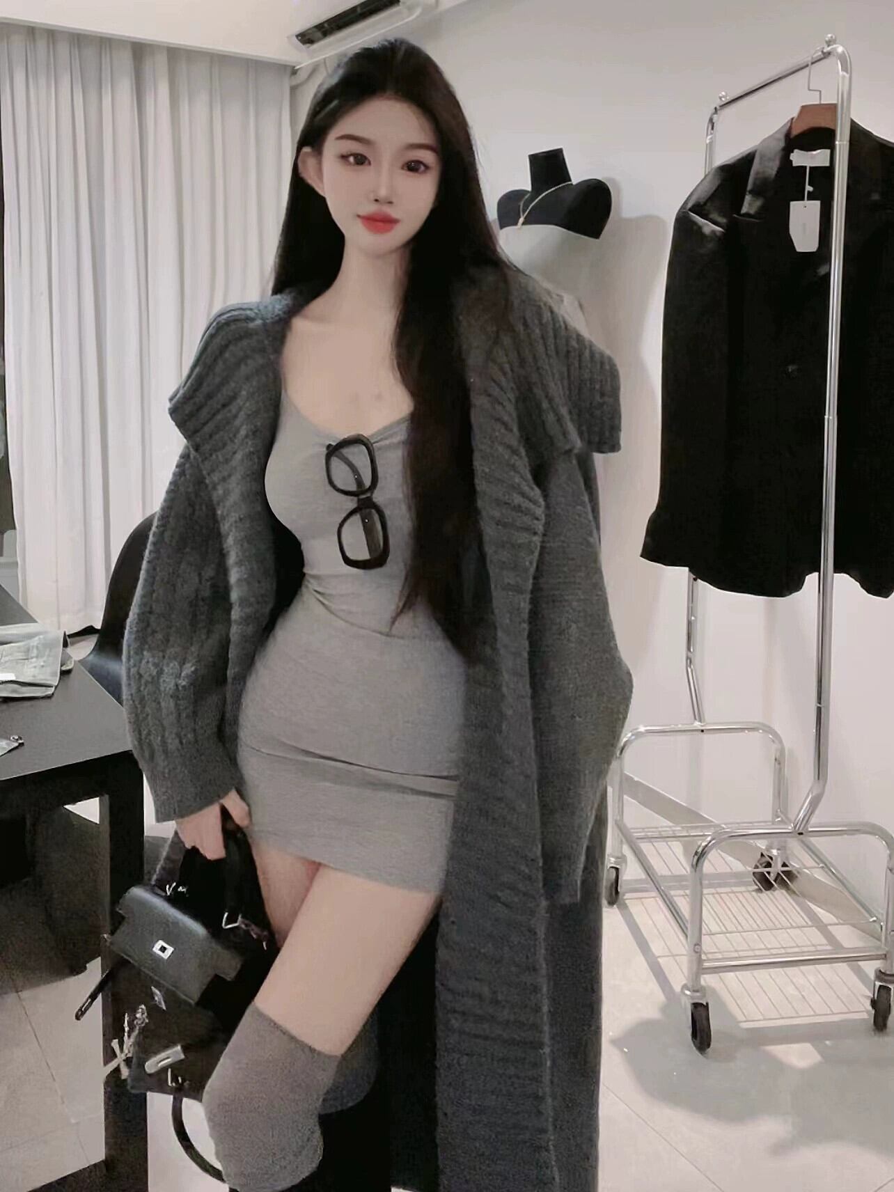 ナナ〜フランスの怠惰なスタイルのスリムドレスの女性の秋冬の新作 2 点セットルーズスリムセーターカーディガン オータム 秋物 ウィンター 冬物 nana99226582277 | modepoisson