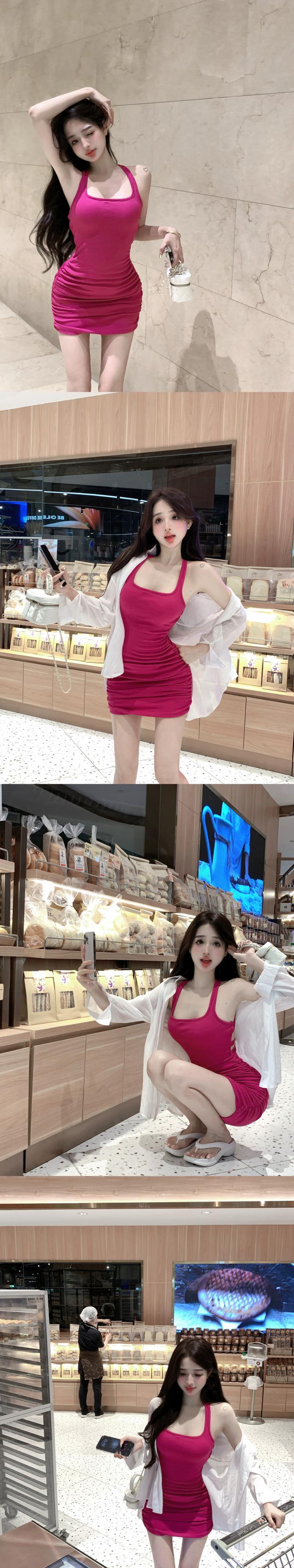 甘辛スーツ、スリムでセクシーなホルターネックヒップカバードレス、デザイン日焼け止めシャツ2点セット女性夏 大人ガーリー スウィート キュート カジュアル サマー 夏物 nana54984711883 | modepoisson