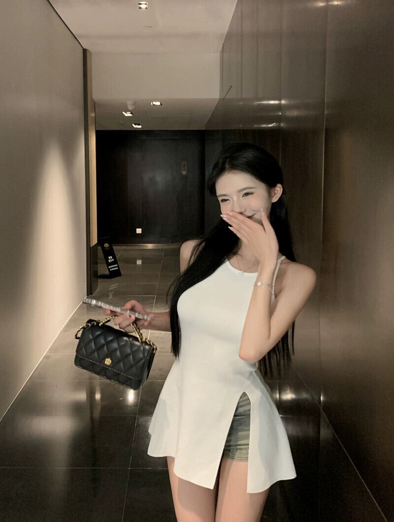 ピュア ラスト スタイル セーター 夏 レディース フレンチ ニッチ スリット スリム スリム ミドル丈 ベスト サスペンダー トップ サマー 夏物 nana30839940801 | modepoisson