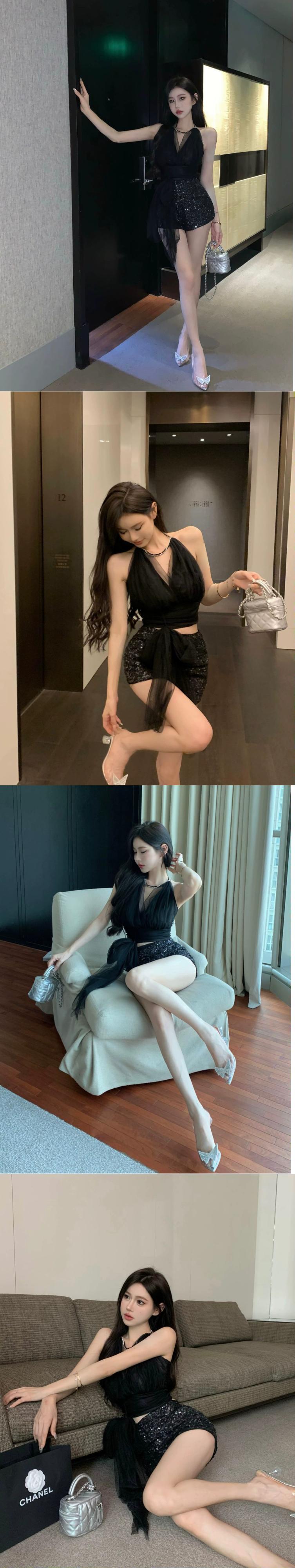 ホットホルターネックホルタートップスパンコールショーツハイエンド小さなドレスツーピースセット女性の新しい夏のファッションスーツ サマー 夏物 ブルマー nana53406284688 | modepoisson