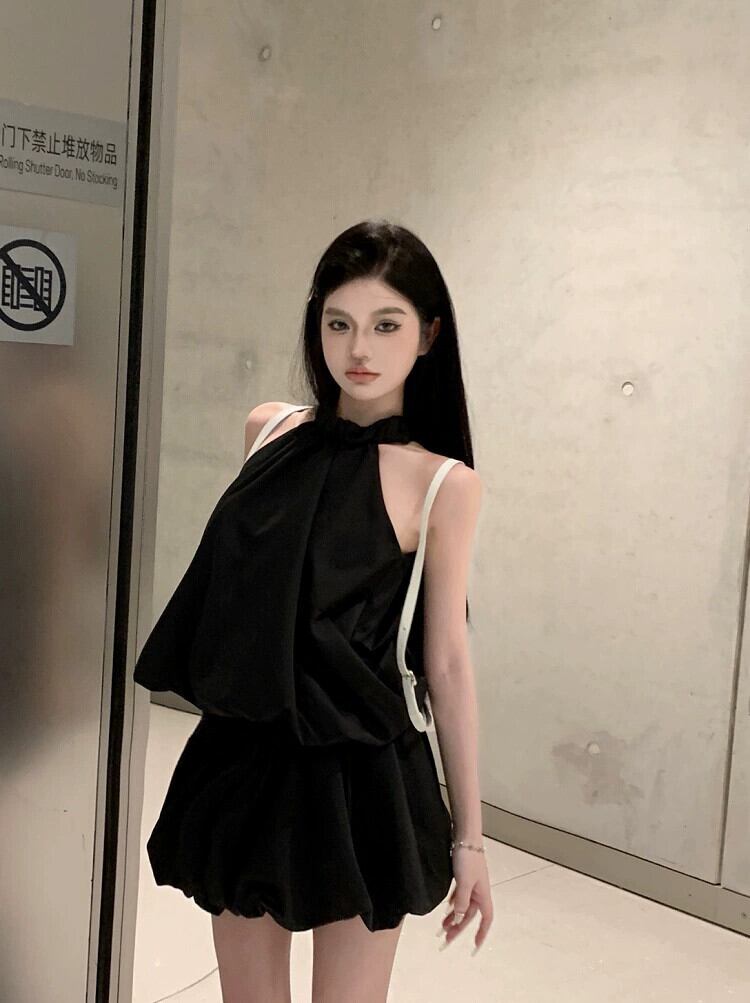 ホット純粋な欲望ホルターネックトップストリートスーツスカート小柄ハーフレングスショートスカート女性の夏のファッションツーピースセット サマー 夏物 ピュア nana7730512740 | modepoisson