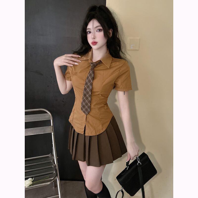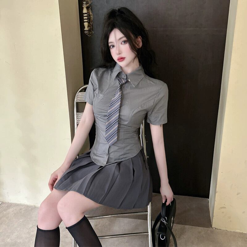 色:コーヒーとネクタイ,ネクタイ付きグレーのドレス,コーヒーネクタイ+コーヒースカートスーツ,グレーのネクタイ+グレーのスカートスーツ