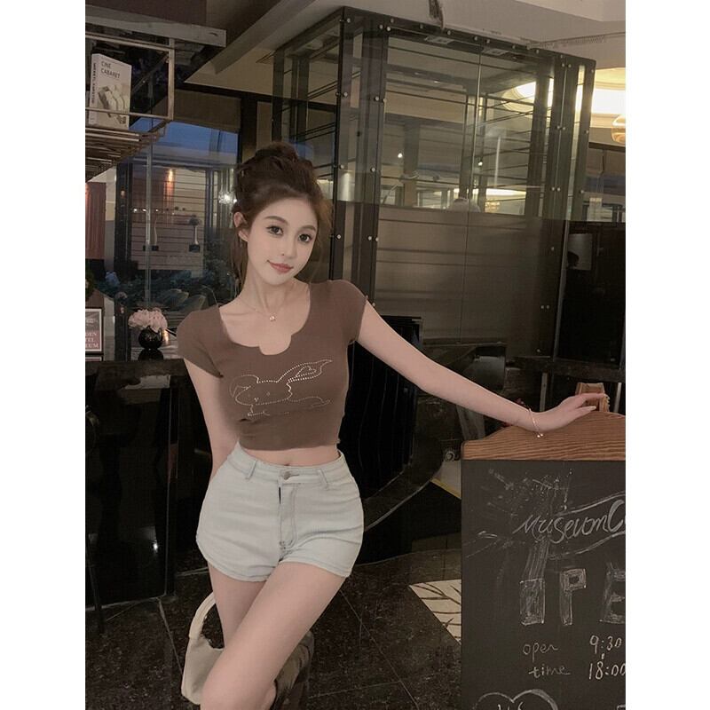 ホット重工業タイトフィット半袖 tシャツ女性の夏の新しいニッチショートスタイル痩身フランスの甘くてスパイシーなトップ 大人ガーリー スウィート キュート カジュアル サマー 夏物 nana99370923852 | modepoisson