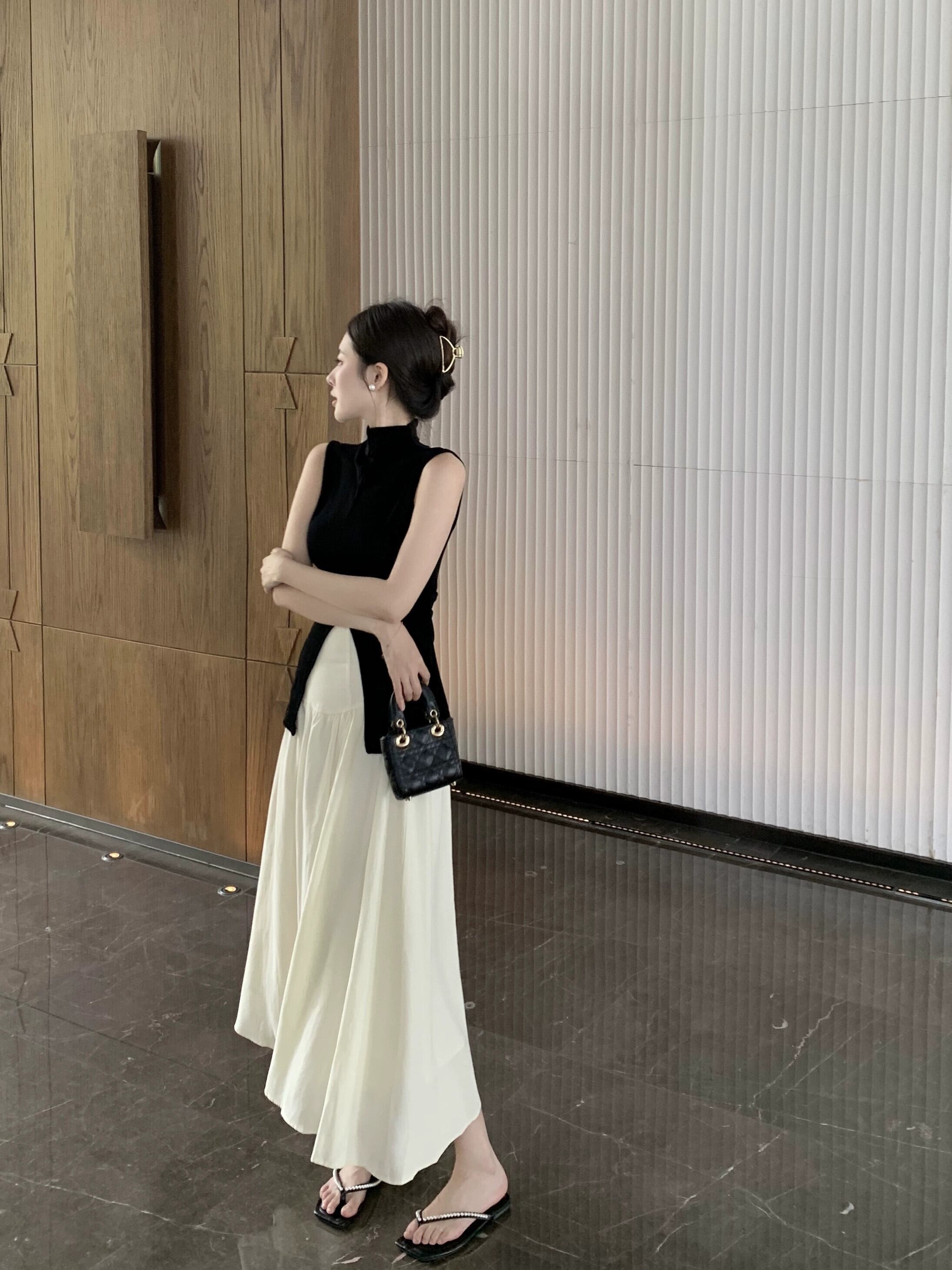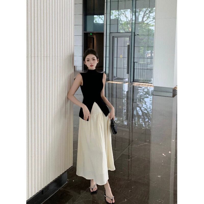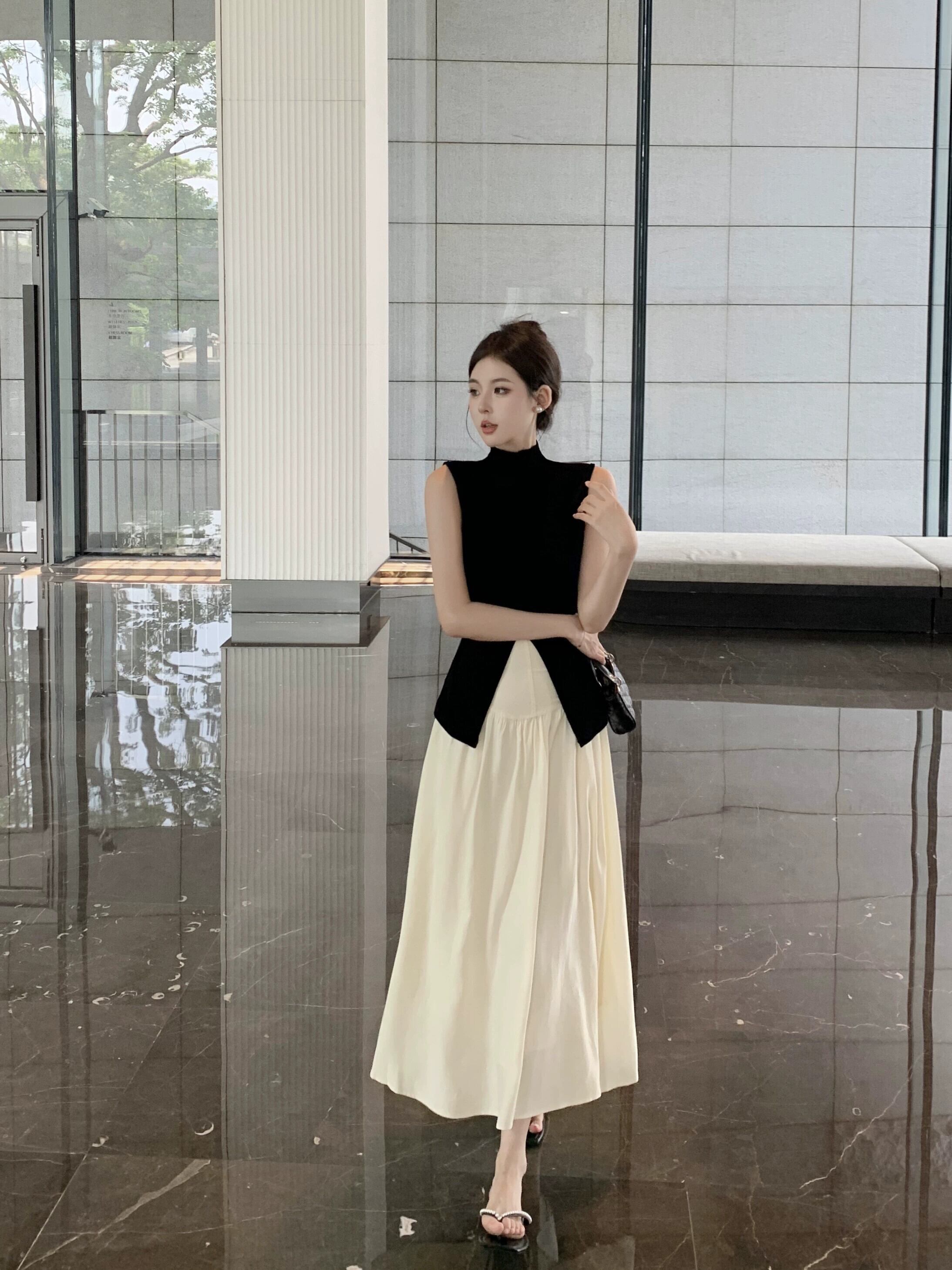 アセテートデザインベストハイウエスト気質ハーフレングススカート 2023 新しいファッションスーツツーピースセット女性の夏 ハイウェスト サマー 夏物 nana72924150481 | modepoisson