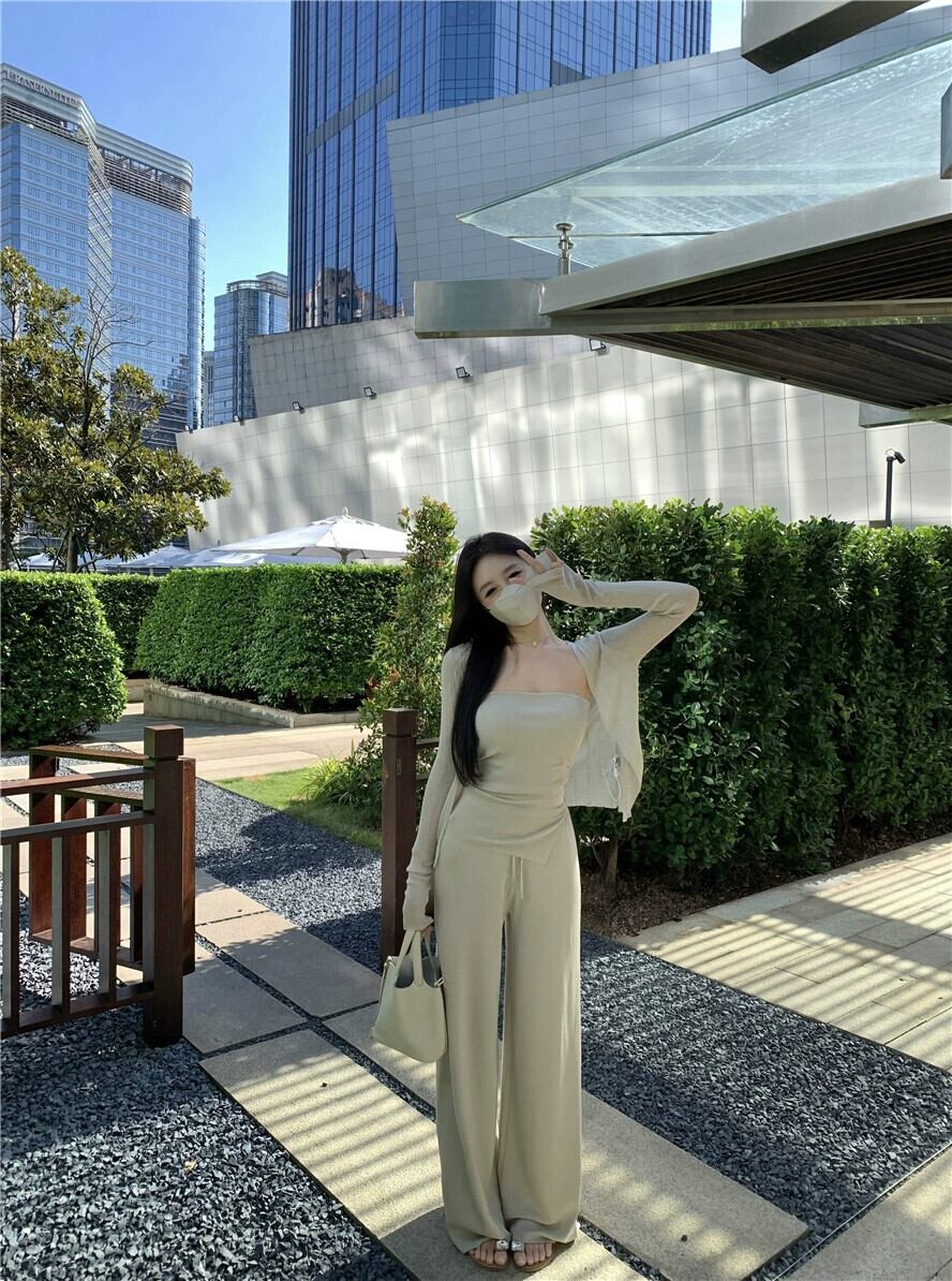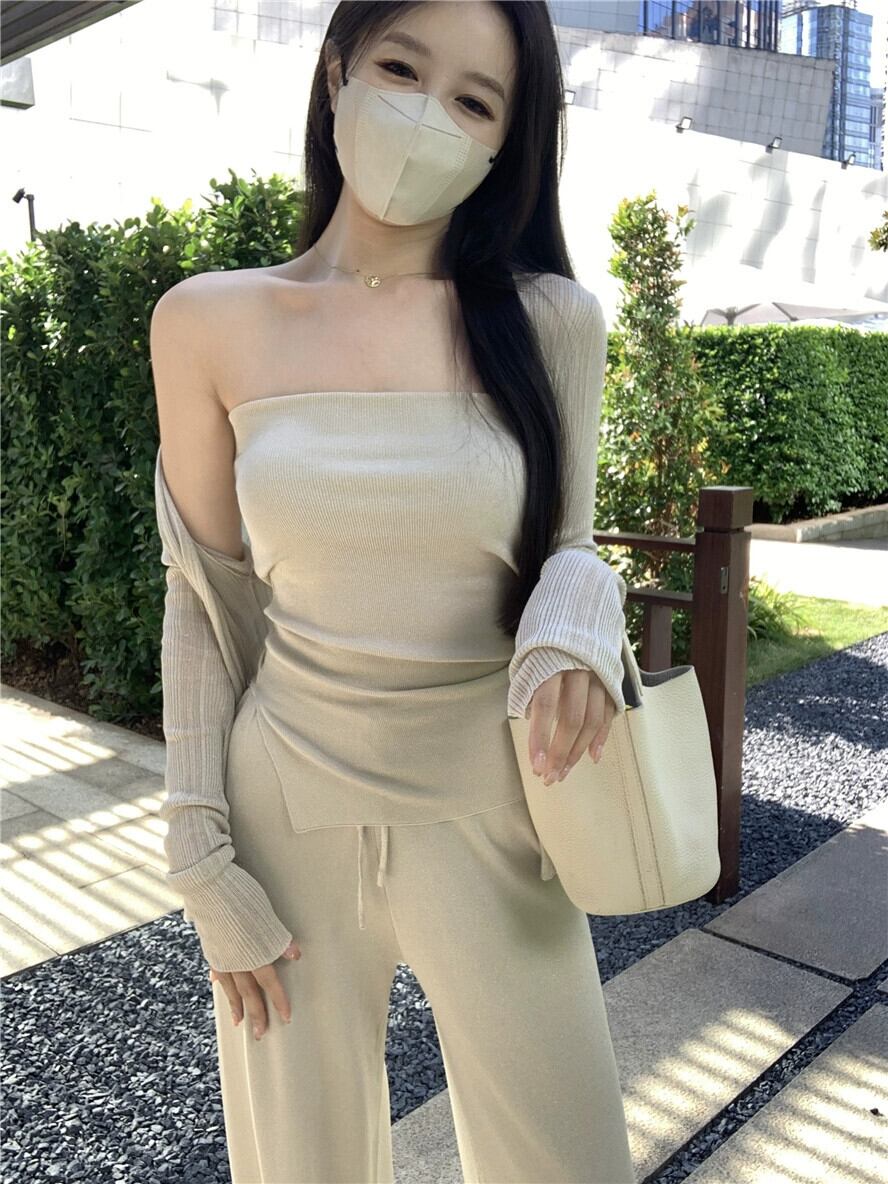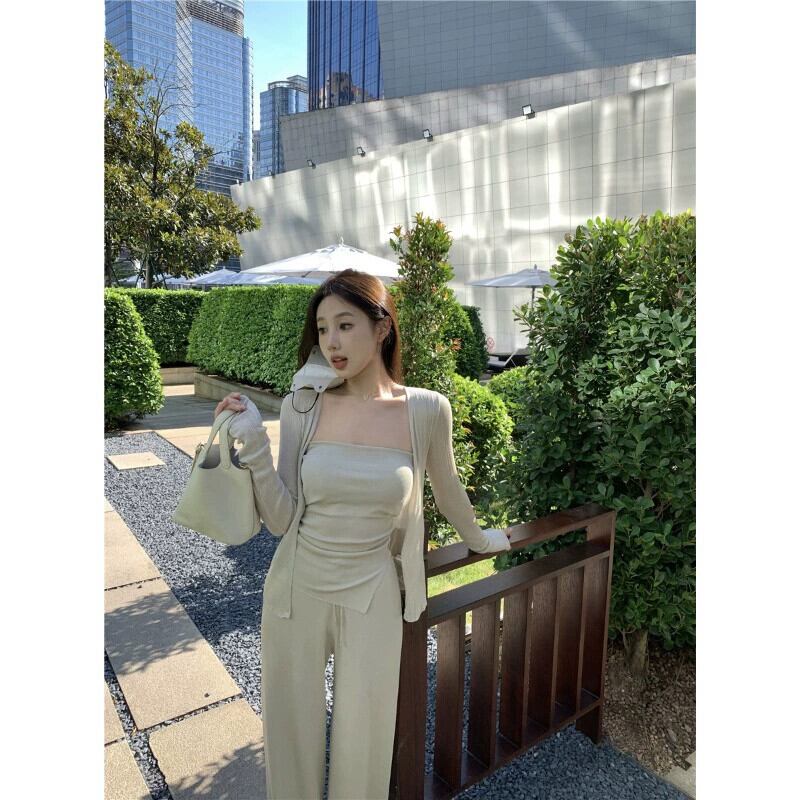 ネットセレブ 2023 ストリートスーツ甘いニットチューブトップ長袖カーディガンカジュアルパンツ女性の新しい夏の 3 点セット ロング 大人ガーリー スウィート キュート サマー 夏物 nana80332314413 | modepoisson