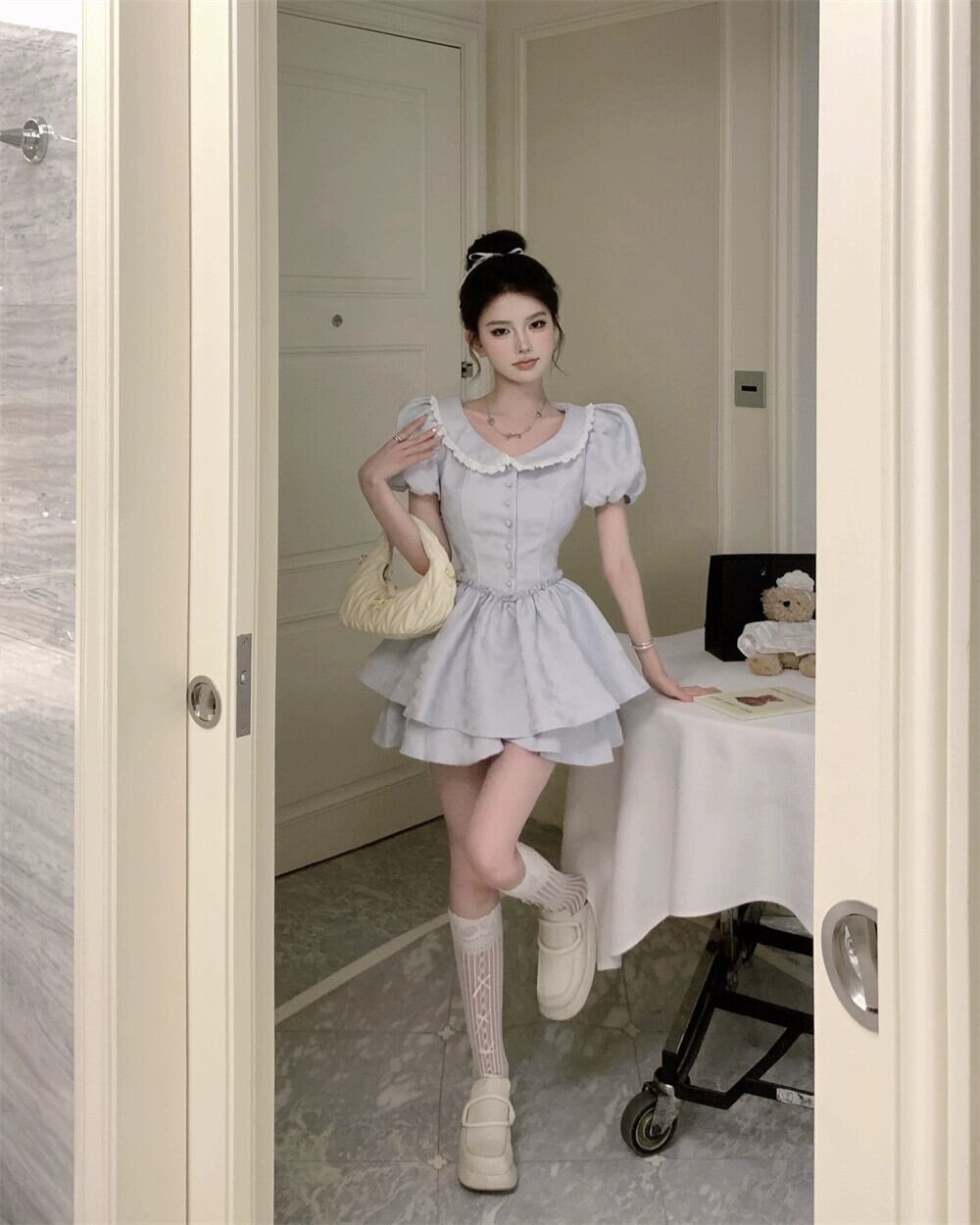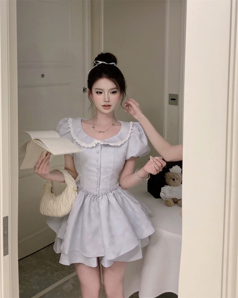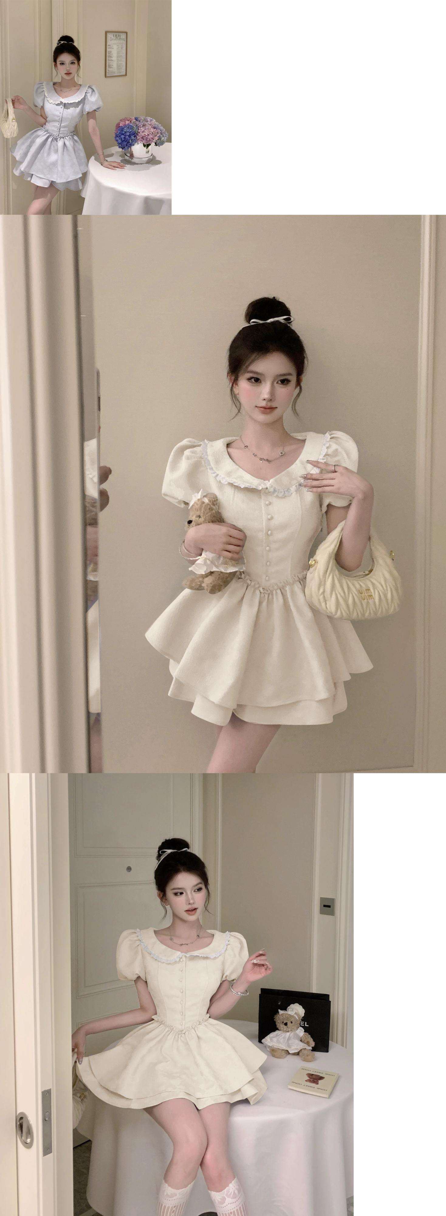 甘い胸スーツスカート夏プリンセス妖精スカートフレンチレトロドレスふくらんスカートウエストウエスト婦人服 大人ガーリー スウィート キュート カジュアル サマー 夏物 nana34370198076 | modepoisson