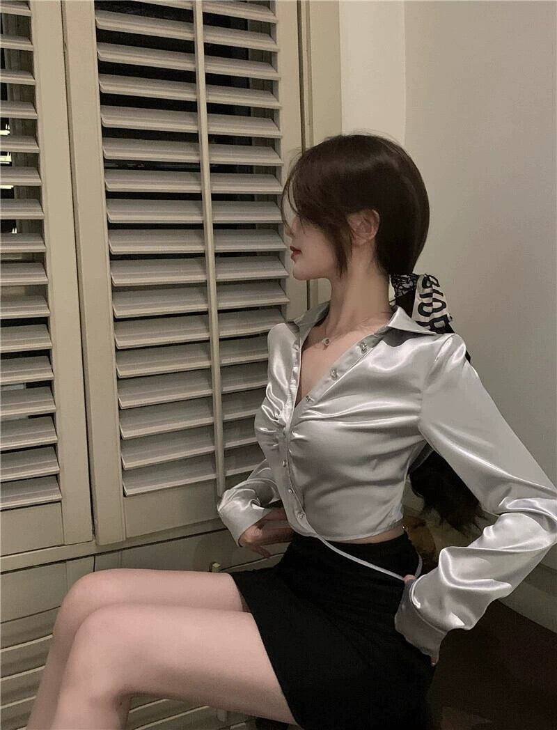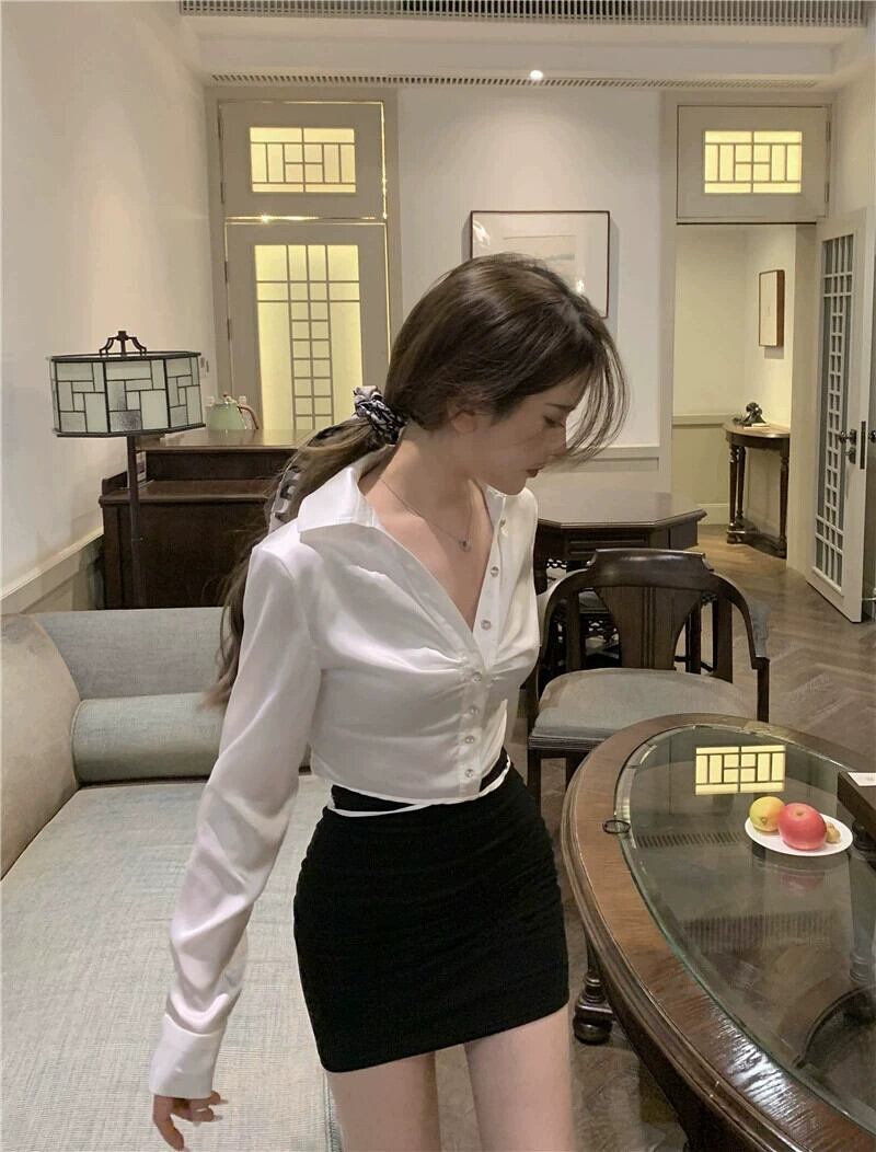 フランスのセクシーな純粋な欲望のシャツのデザインニッチ白模擬シルク V ネック シャツ女性のストラップ トップ夏 ホワイト サマー 夏物 Vネック ピュア 人工 nana7918634282 | modepoisson