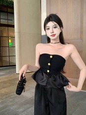ホットハイエンドフリルチューブトップトップ、エレガントな女性のツーピーススーツカジュアルパンツ女性の夏の2023新しいスタイル サマー 夏物 nana56299896211 | modepoisson