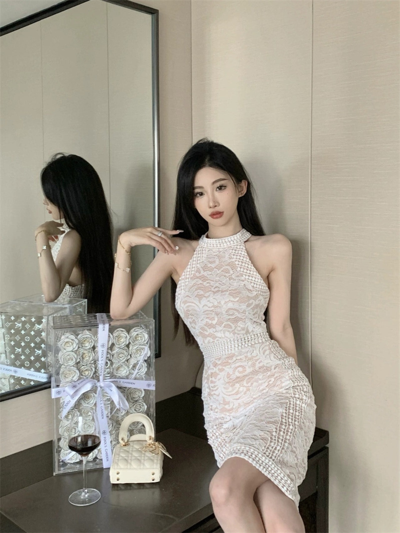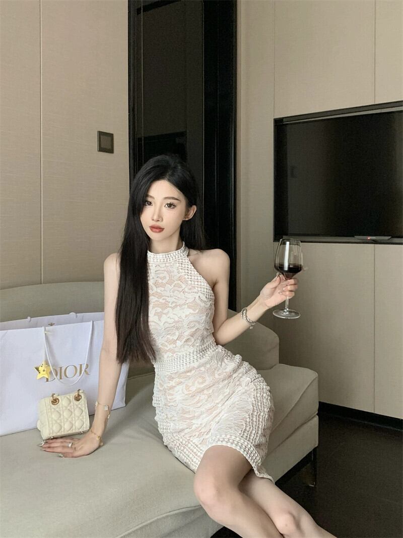 -エンドレースステッチ中空ショルダーストラップレスホルターネックスリムヒップカバーノースリーブ気質ウエストドレス夏のロングスカート女性 サマー 夏物 nana63661289178 | modepoisson