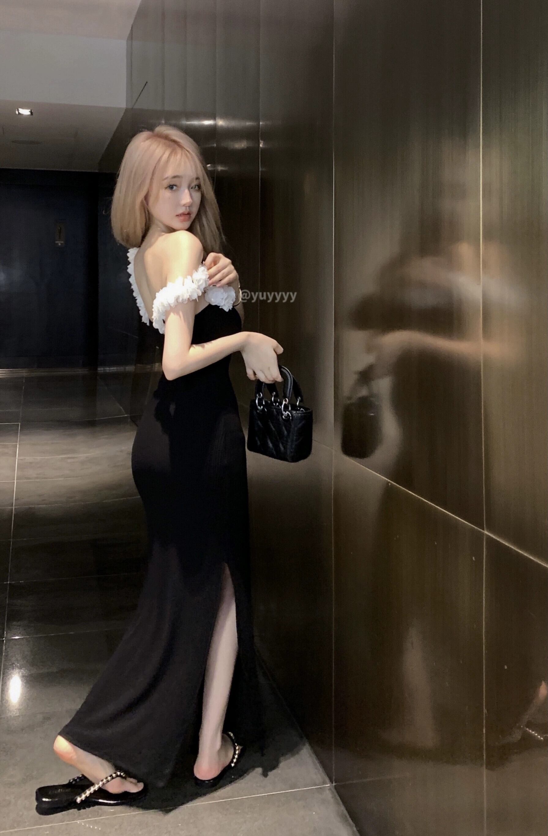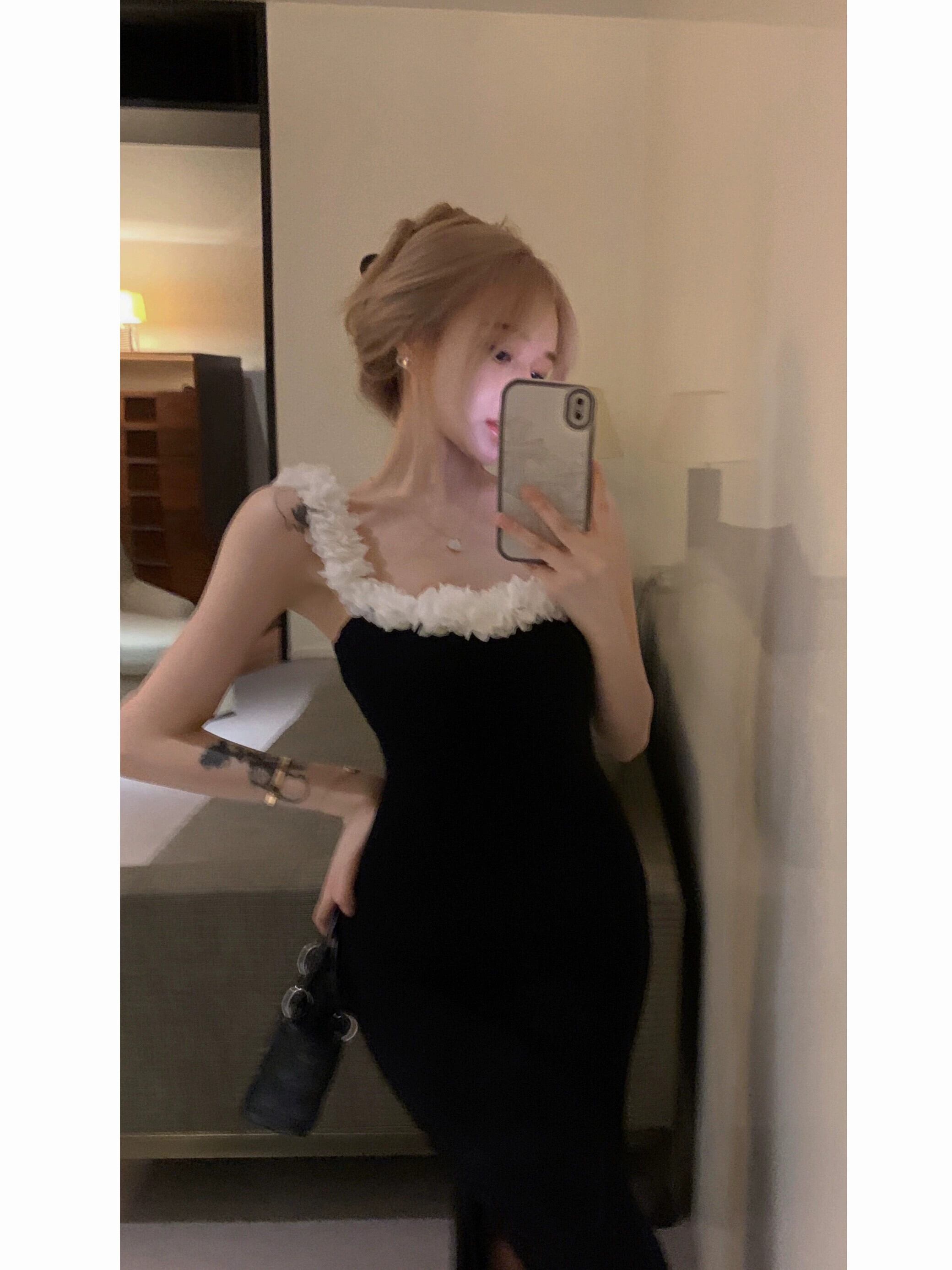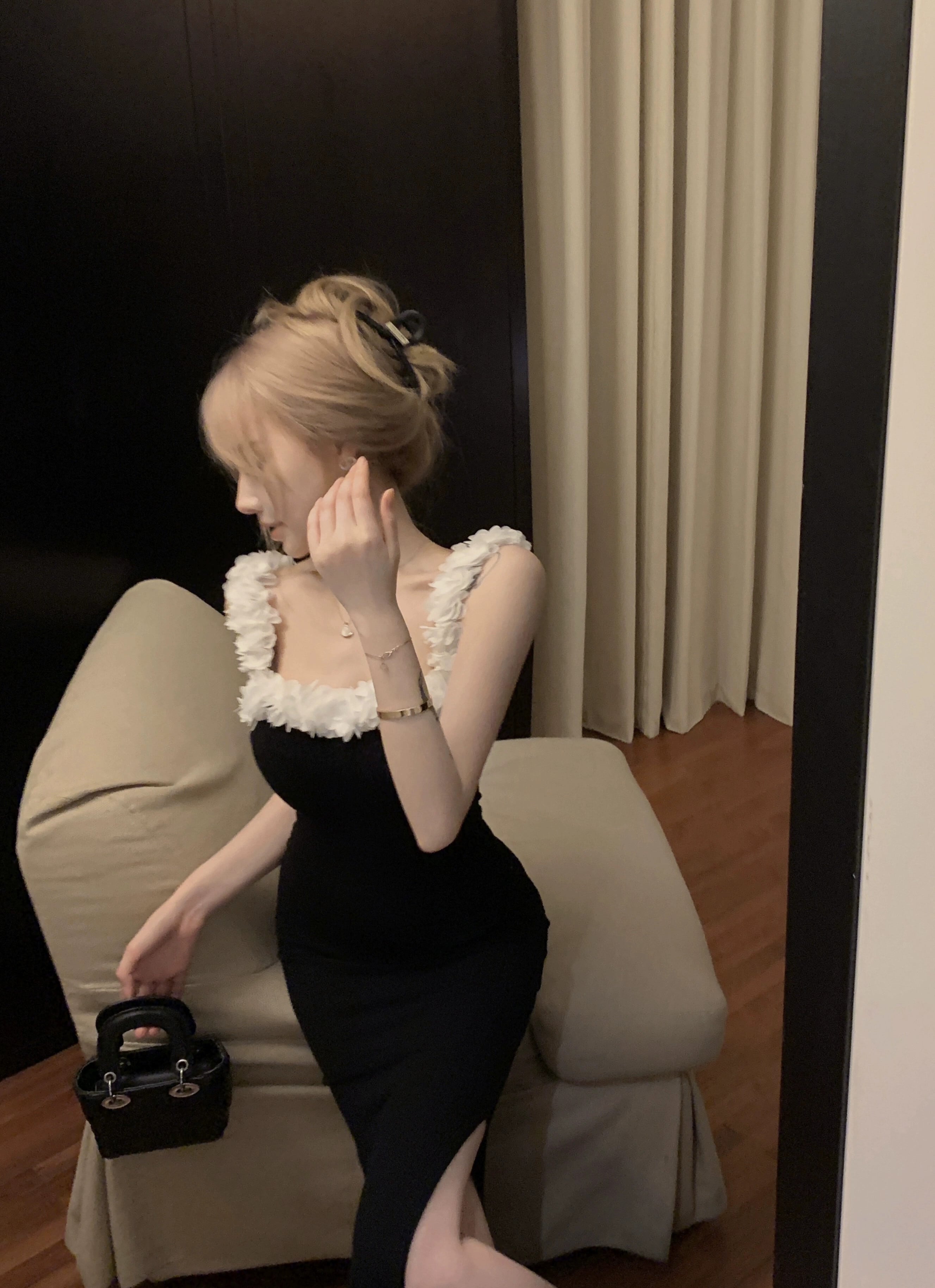 おしとやかな気質ドレススリムスリットロングスカートレディース夏スクエアネックスリムニッチフラワーサスペンダースカート サマー 夏物 フラワーデザイン スクウェア nana96760570855 | modepoisson