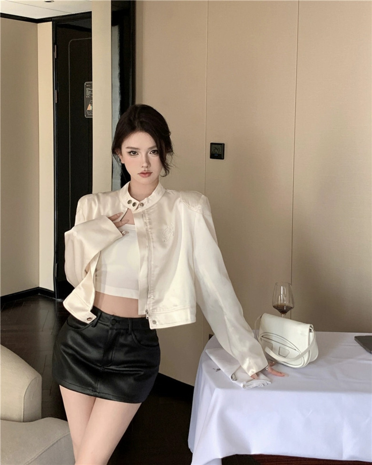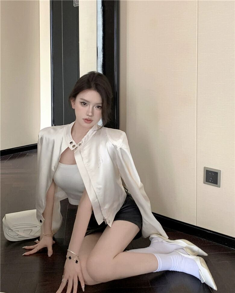 色:ベージュのショルダーパッド入りジャケット