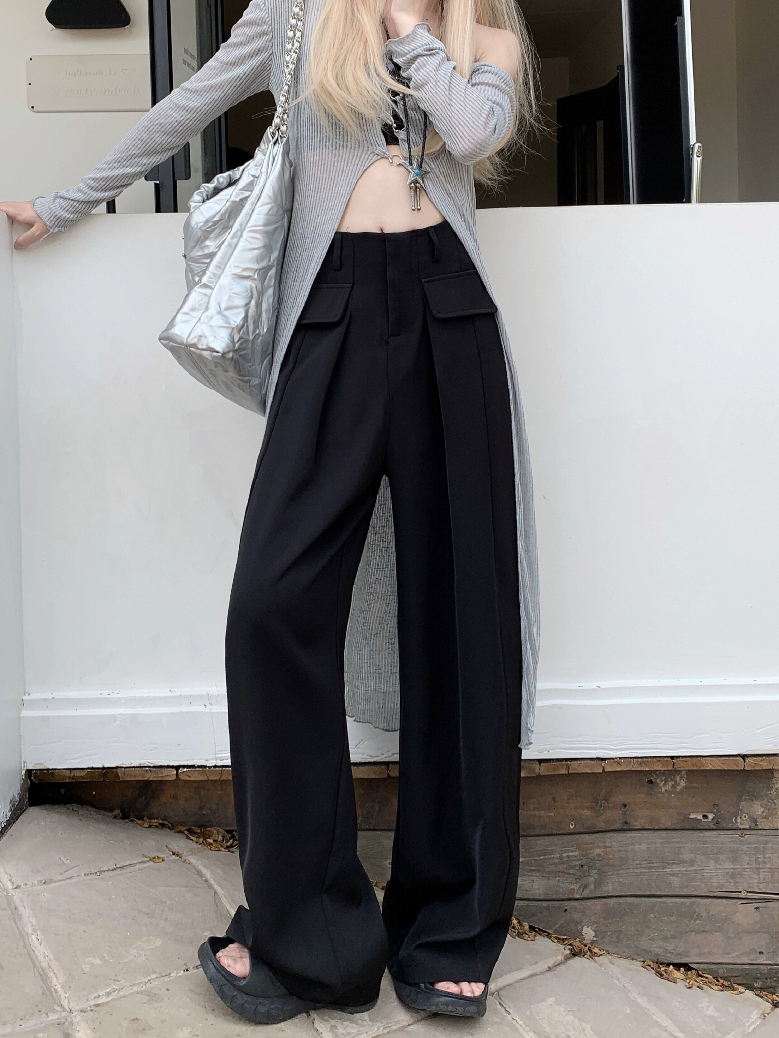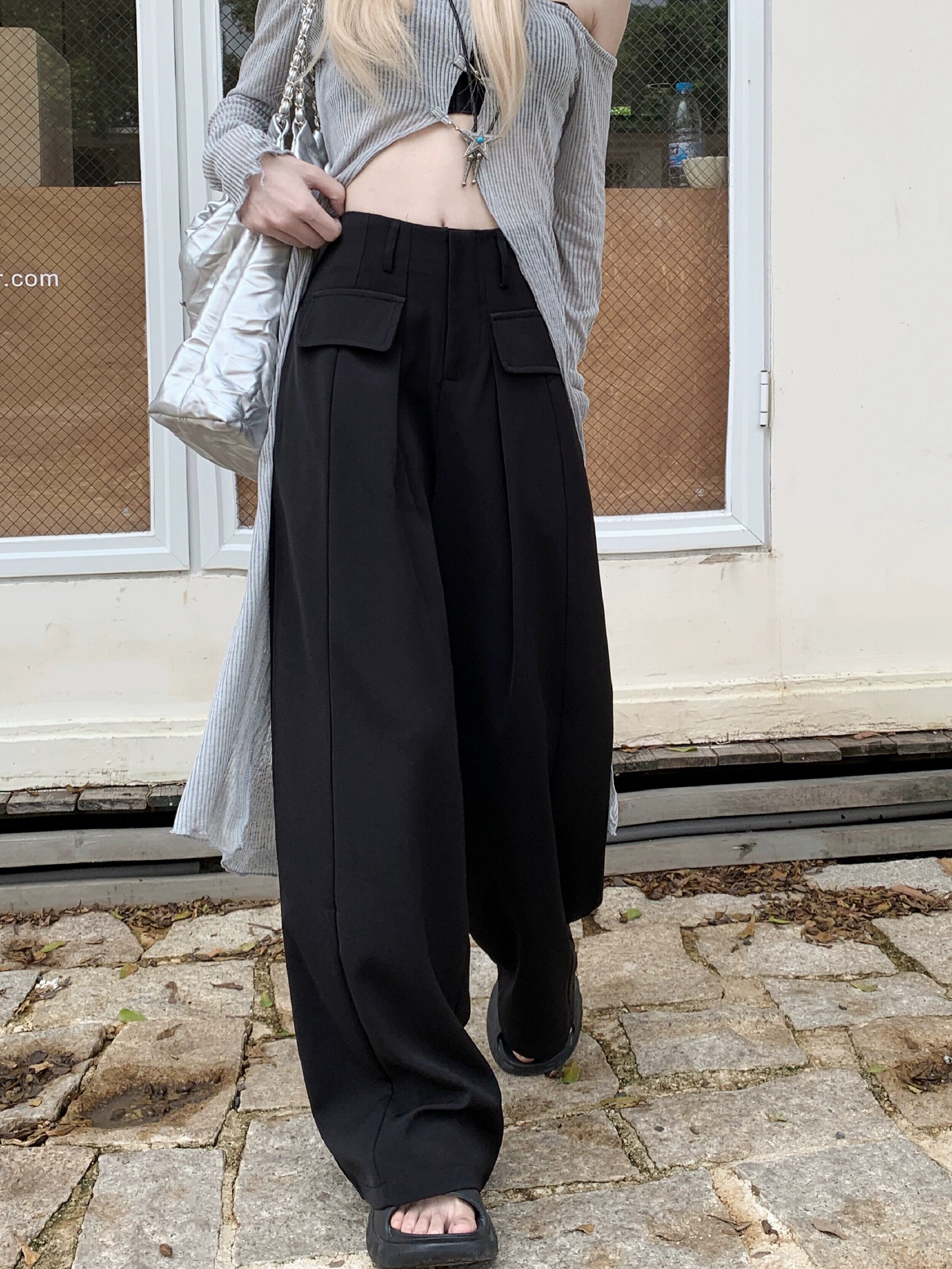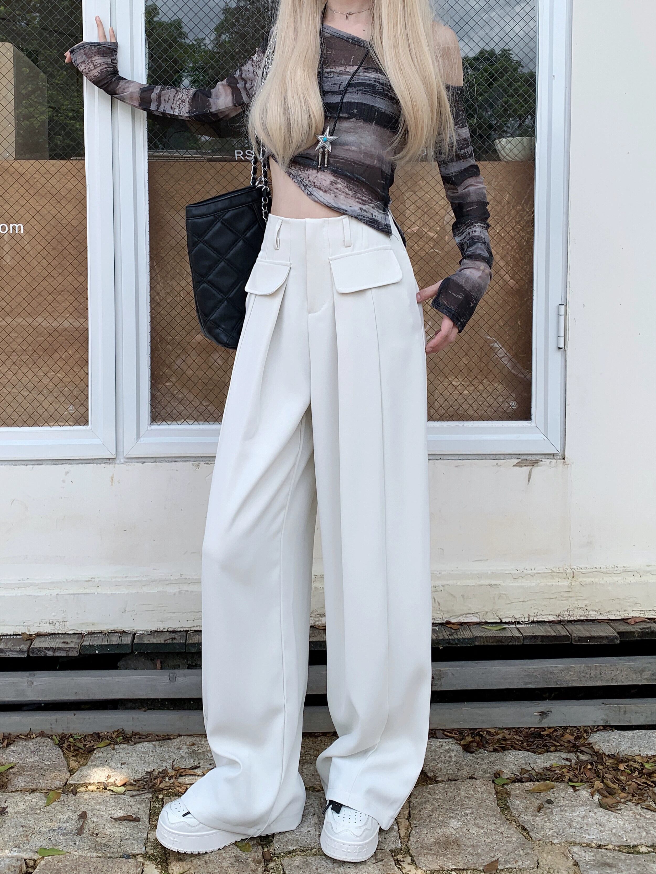 ホットガールワークスーツパンツウエストスリムストレートパンツドレープワイドレッグパンツ女性の夏 2023 スタイル サマー 夏物 ワイドパンツ nana64842736966 | modepoisson