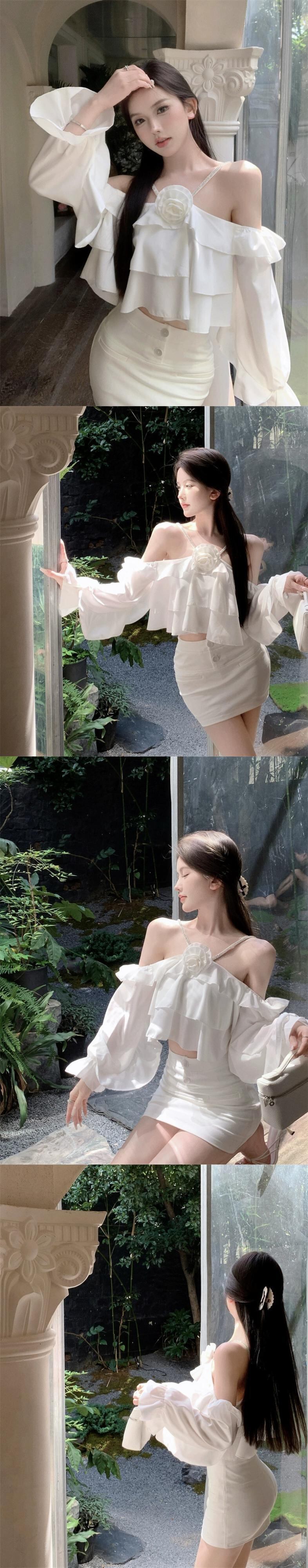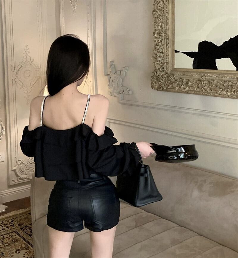 ワンショルダー長袖オフショルダーシャツレディースフランス秋ニッチショートホルターネックサスペンダー今年人気の2023トップス ロング オータム 秋物 nana91764304074 | modepoisson
