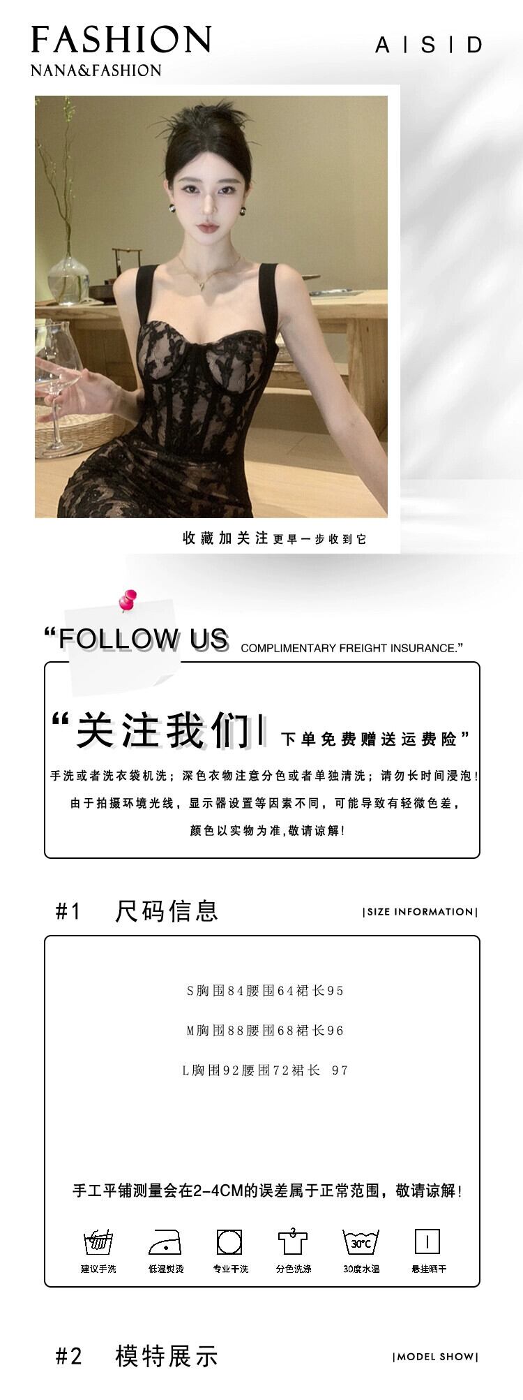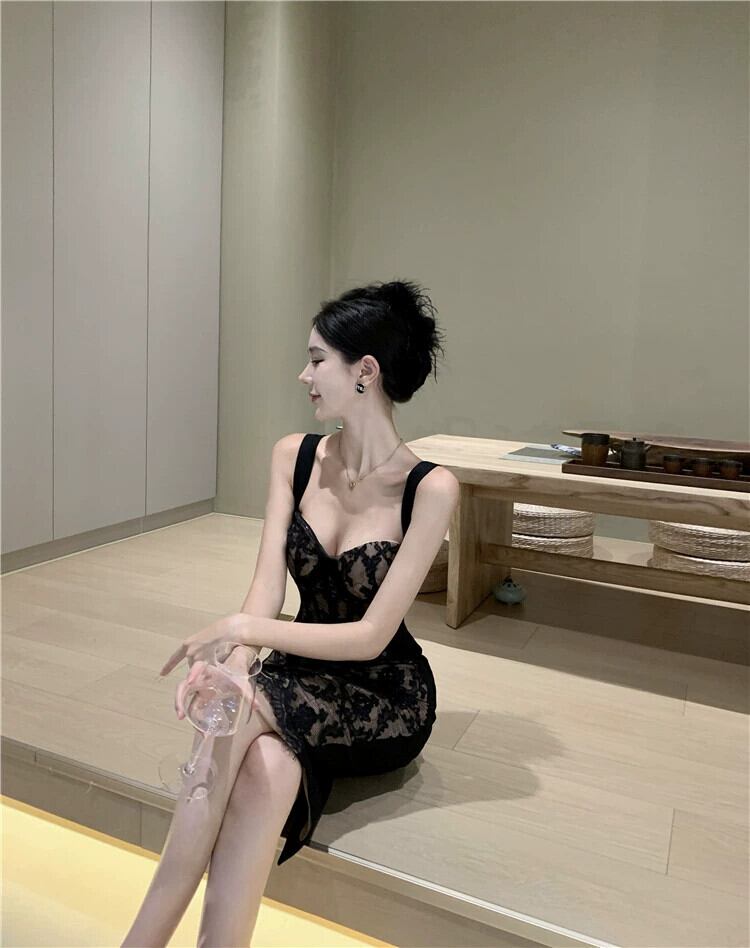 フランスのセクシーなサスペンダードレスの女性の夏の 2023 新しいレーススプライシングノースリーブスリム気質ミッドレングススカート サマー 夏物 nana19945935234 | modepoisson