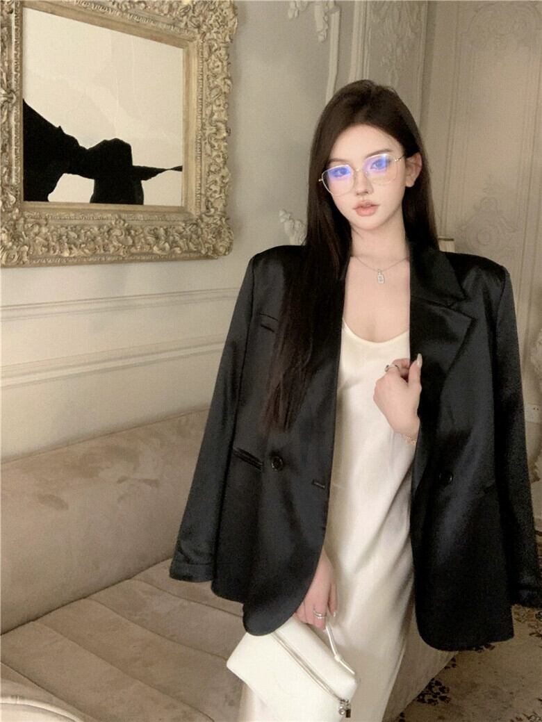色:ブラウンサスペンダードレス,シャンパンライスサスペンダースカート,ブラックサスペンダースカート,肩パッド付きの黒いジャケット