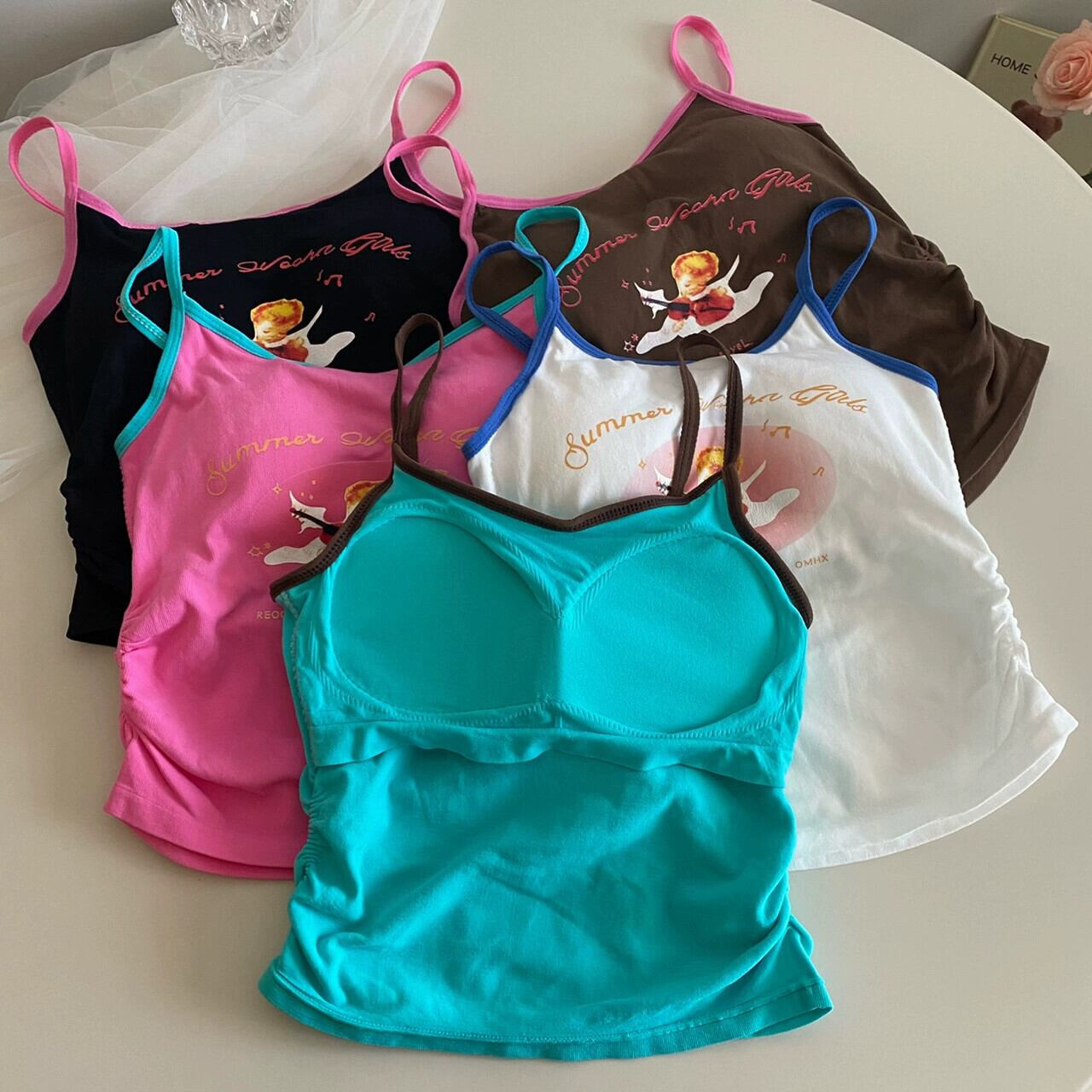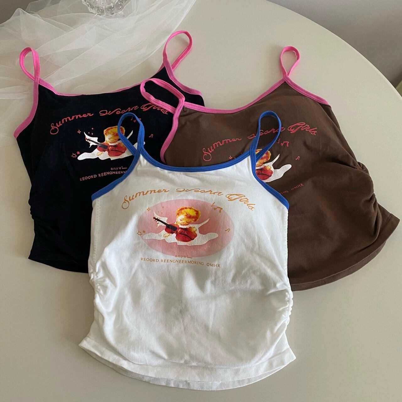 ホットアメリカン漫画プリントキャミソール純粋な欲望スタイルのボトムスショートノースリーブトップ女性が夏に着用します 半袖 ハーフスリーブ サマー 夏物 ピュア nana48168831448 | modepoisson