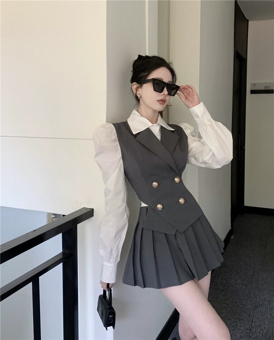 色:グレーのスリーピーススーツ,黒いスリーピースのスーツ