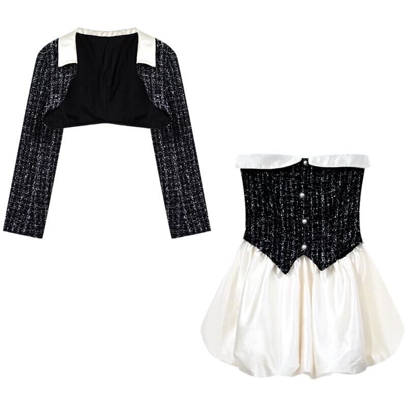 甘辛スリムフィットスーツスカート、ハイエンドチューブトップドレス、ファッショナブルなツーピース長袖トップレディース、2023年秋の新スタイル ロング 大人ガーリー スウィート キュート カジュアル オータム 秋物 nana15574755906 | modepoisson