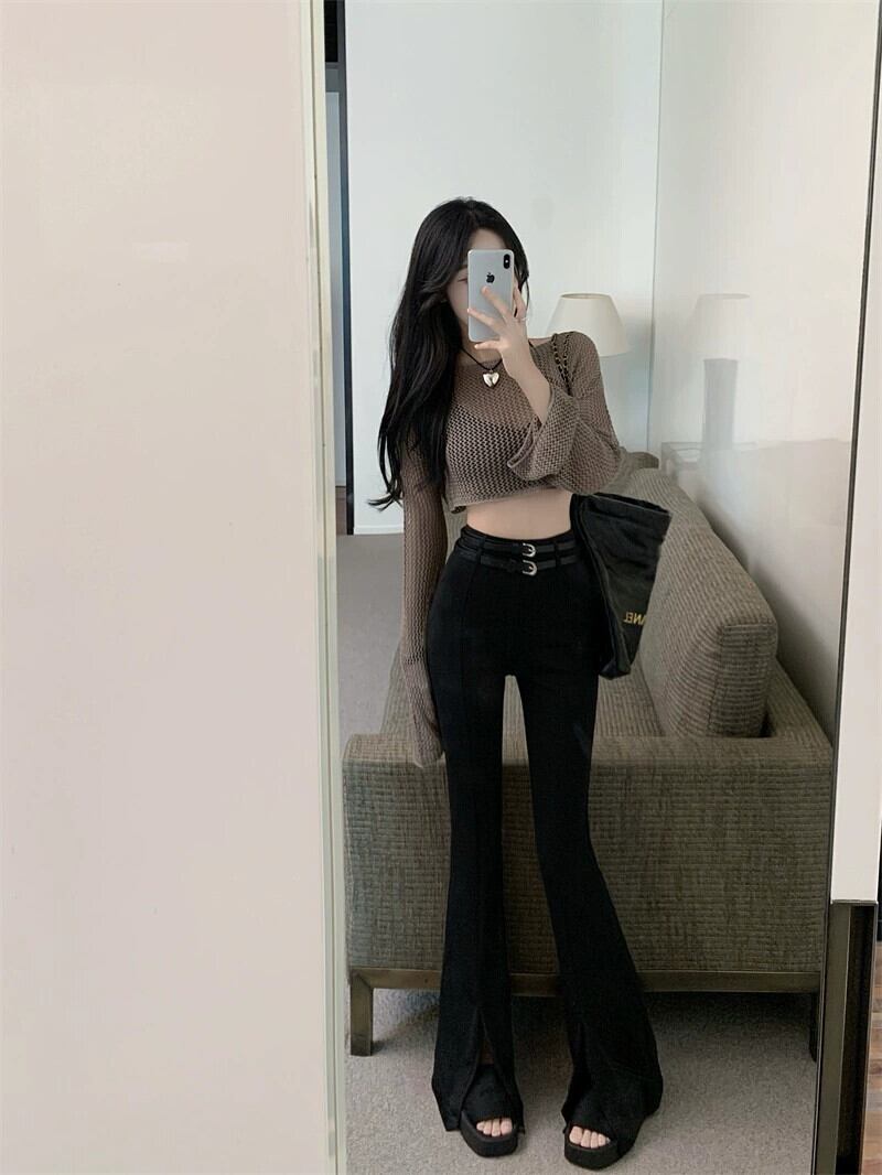 -ウエストブラックスーツカジュアルパンツ夏のマイクロフレアパンツ小さなストレートロングパンツ2023新しい秋服女性 サマー 夏物 オータム 秋物 nana87881335598 | modepoisson