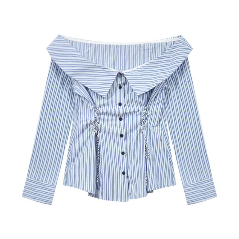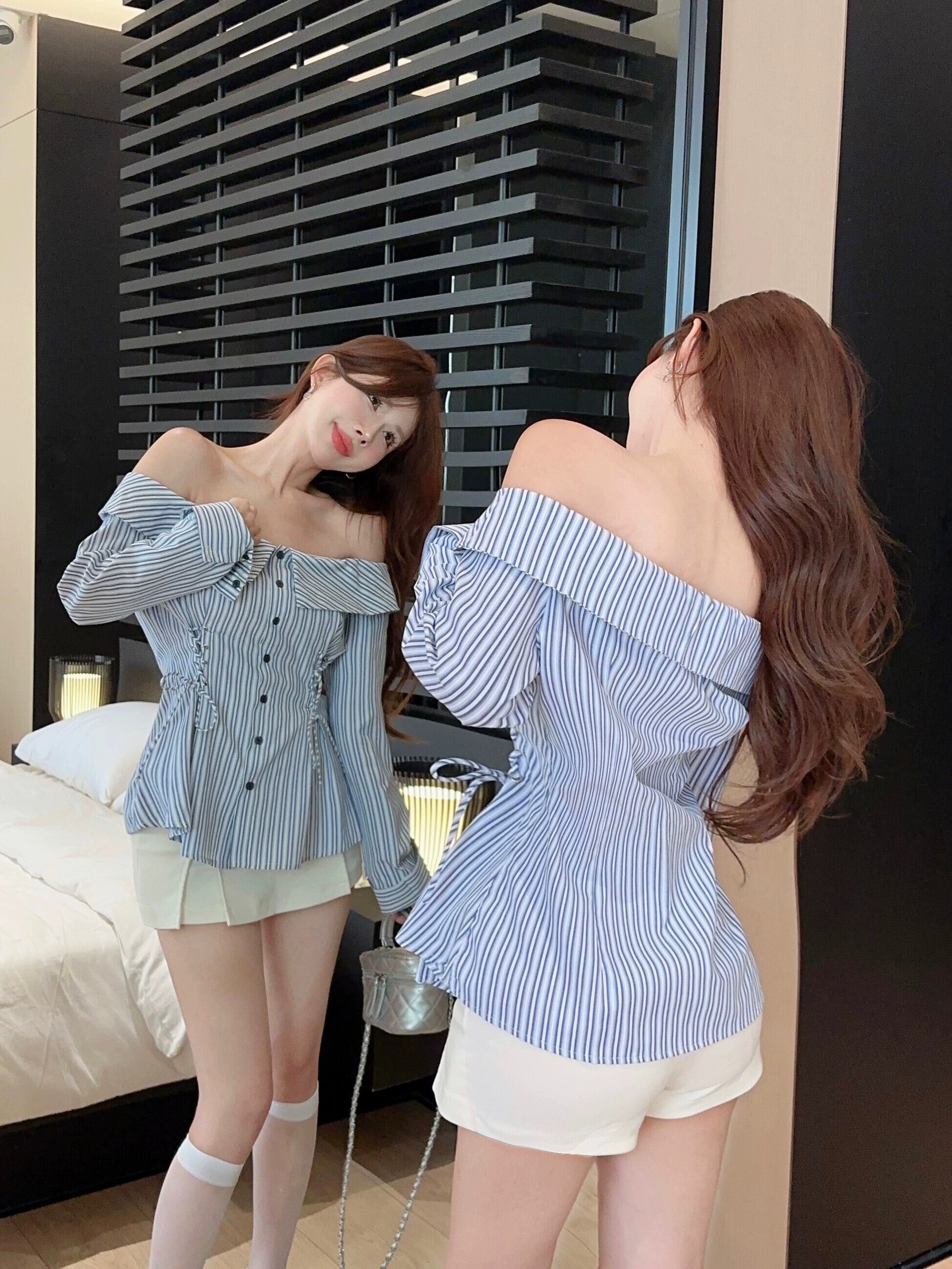 ユニークでユニークなストライプシャツレディース夏長袖シャツスリムウエストファッショナブルシャツフレンチトップハイエンド ロング サマー 夏物 nana57067709716 | modepoisson