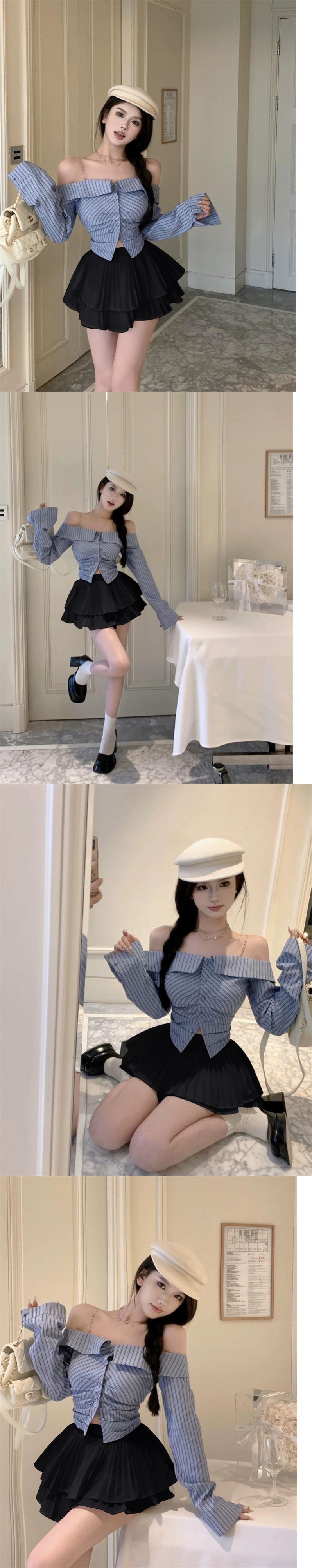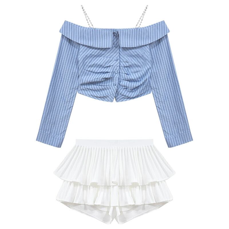 ストライプシャツ、甘い2点セット、ハイウエストスカート、今年人気のスーツスカート、新作秋服レディース 大人ガーリー スウィート キュート カジュアル オータム 秋物 nana51615461818 | modepoisson