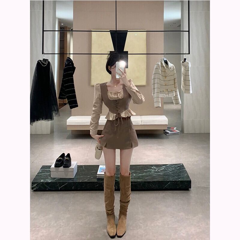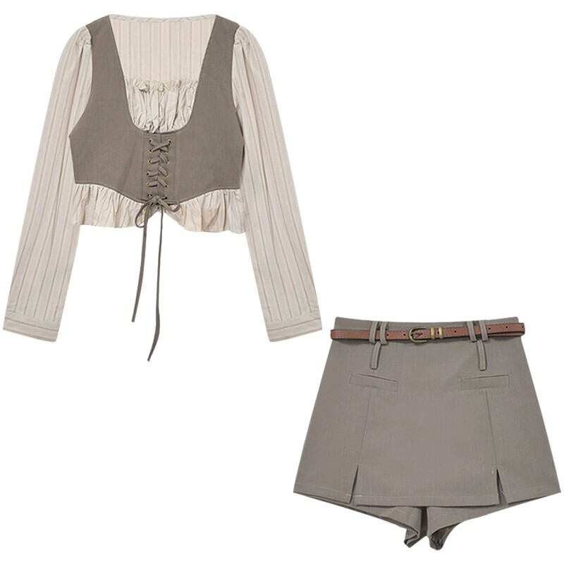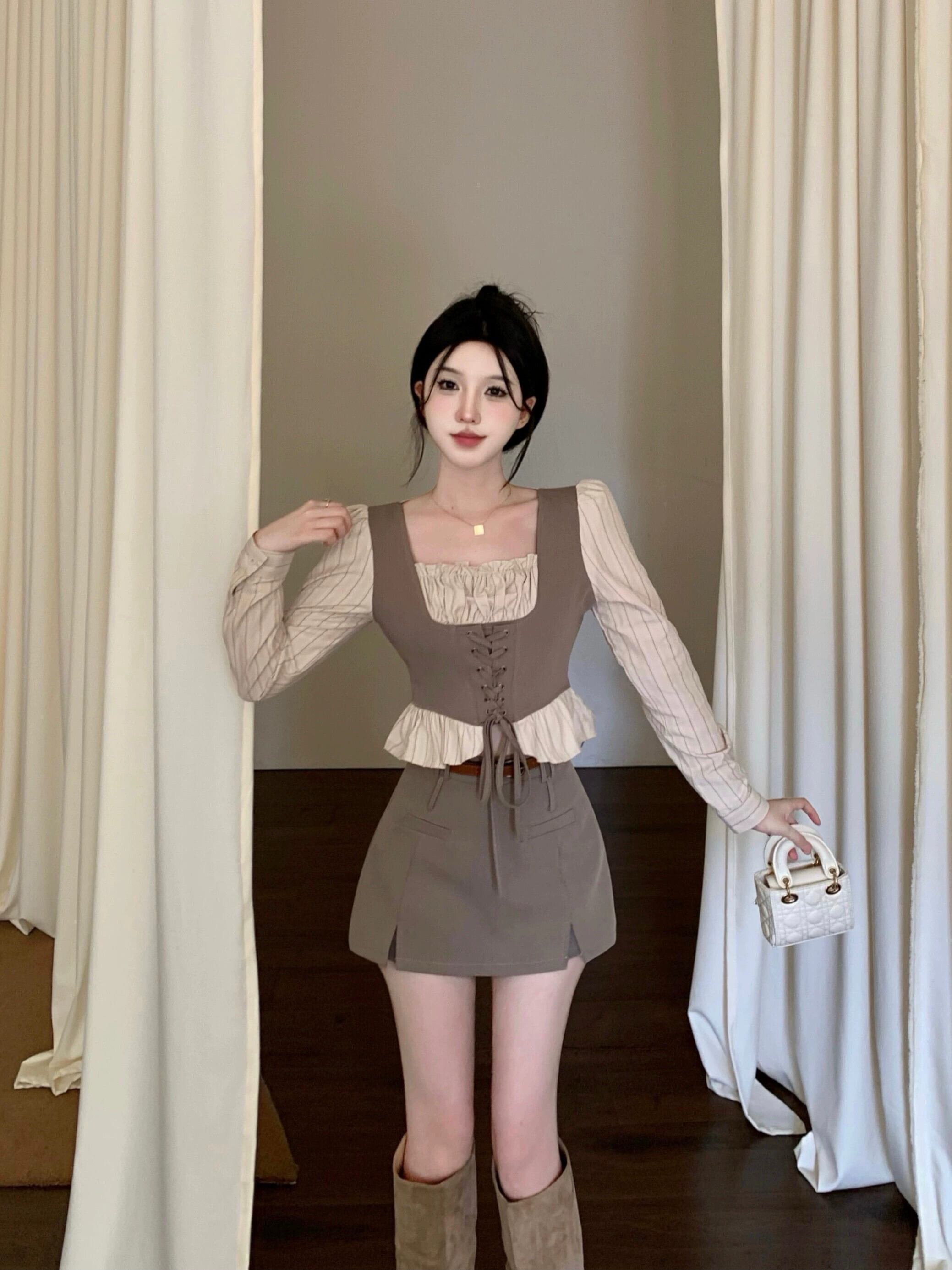 ストリート スタイルのストライプのトップス、ハイウエストのヒップにぴったりフィットするパンツとスカート、秋の服、新しい小さなツーピース スーツ スカートの女性 オータム 秋物 nana22207905826 | modepoisson