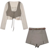 色:ベルト付きカードカラースーツ,ベルト付きグレーのスーツ
