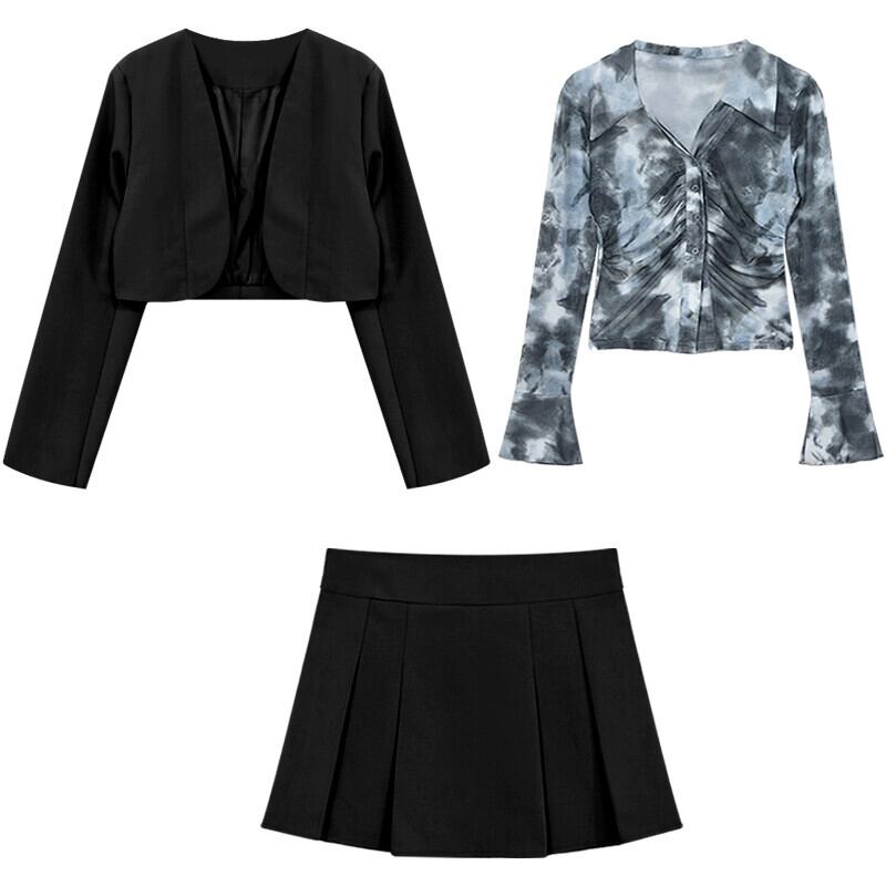 色:カーキ色のシャツ,グレーと黒のシャツ,カーキツーピーススーツ,黒のツーピース