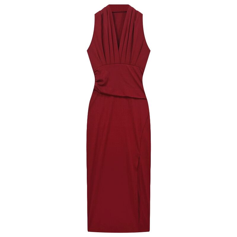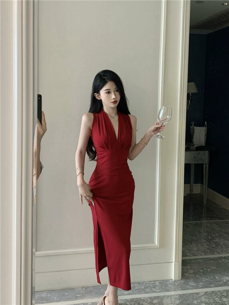 フレンチスタイル V ネックノースリーブドレスヘップバーンスタイルハイエンドスカートウエスト痩身ロングスカート女性の新しい夏のスタイル サマー 夏物 Vネック nana25992646528 | modepoisson