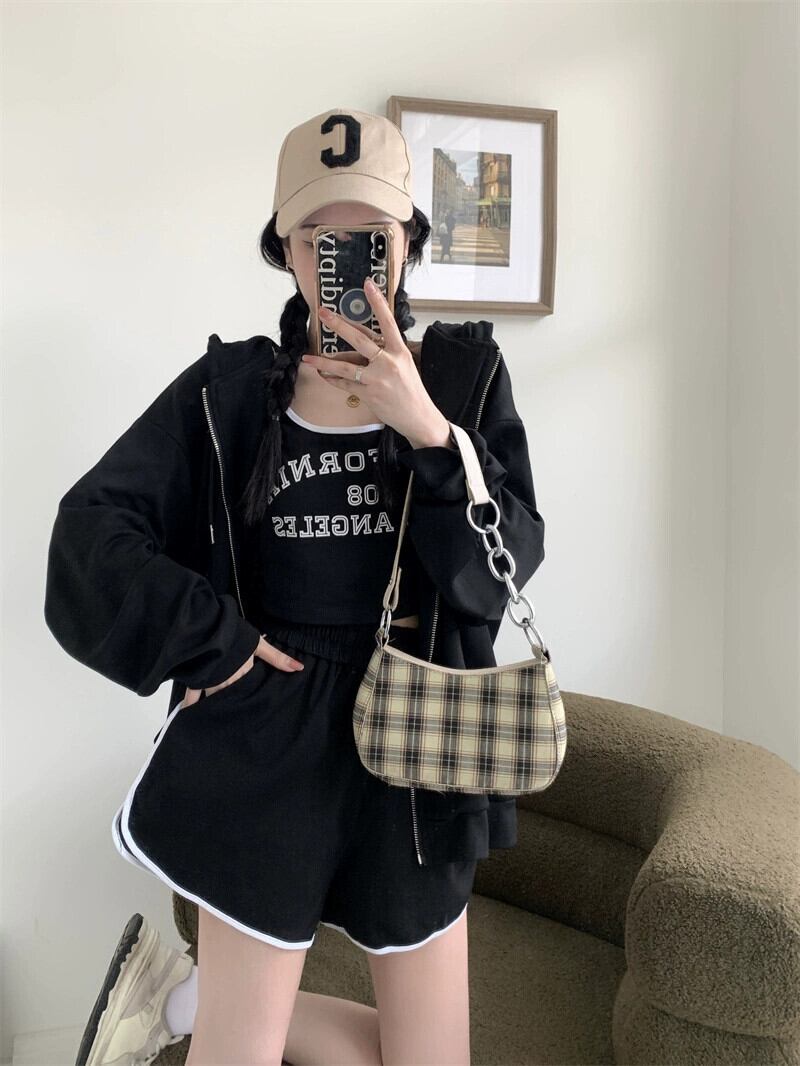 色:黒のベスト,黒いセーター,カーキベスト+ショーツ,カーキスウェットシャツ