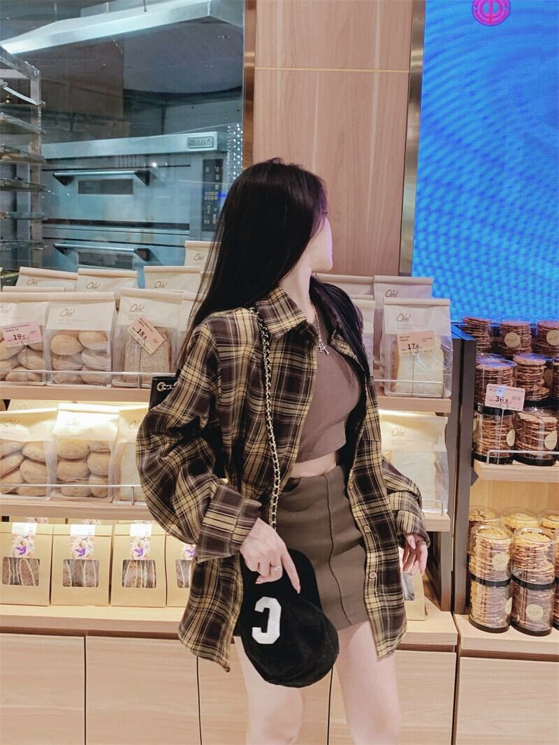色:ダークコーヒーベスト,格子縞のシャツ