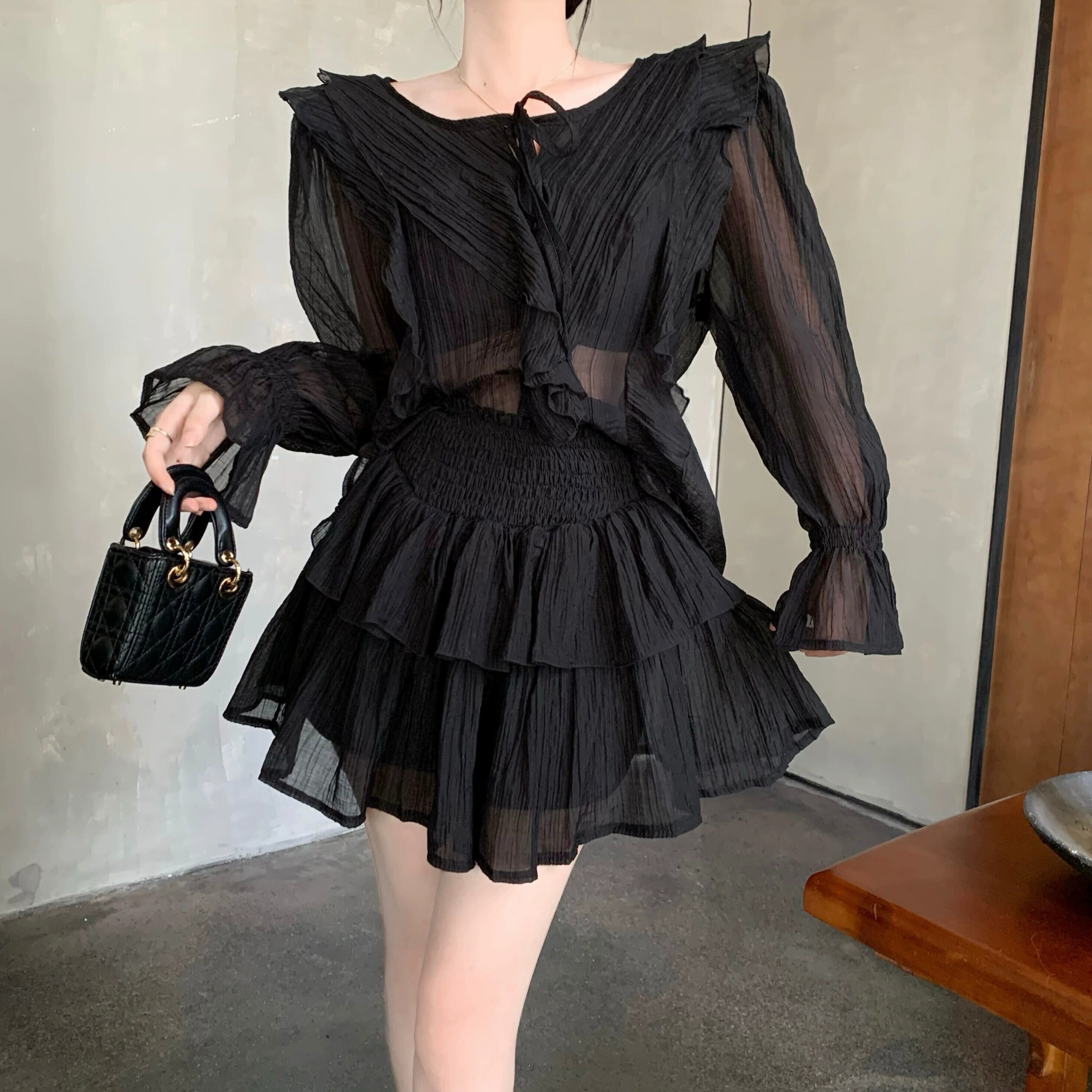 年齢を減らす、美しくスタイリッシュなスーツ、フレンチシャツ、ハイウエストスカート、甘い気質とファッショナブルな秋の女性の2点セット 大人ガーリー スウィート キュート カジュアル オータム 秋物 nana75667602537 | modepoisson