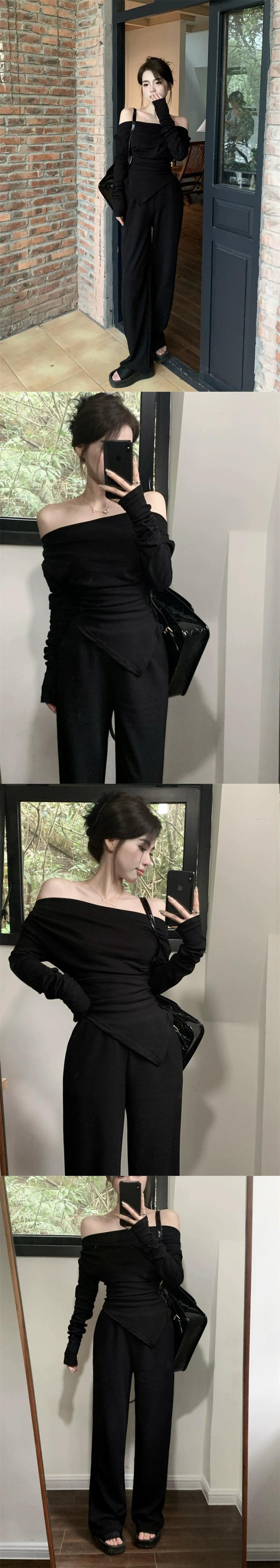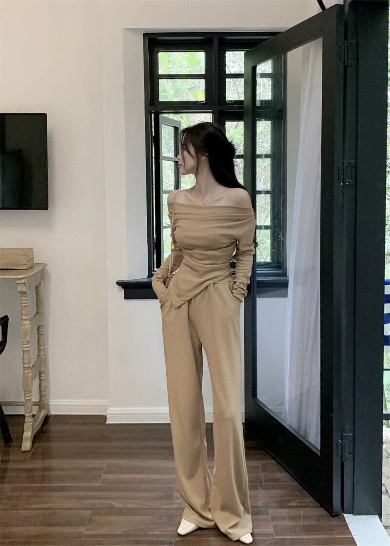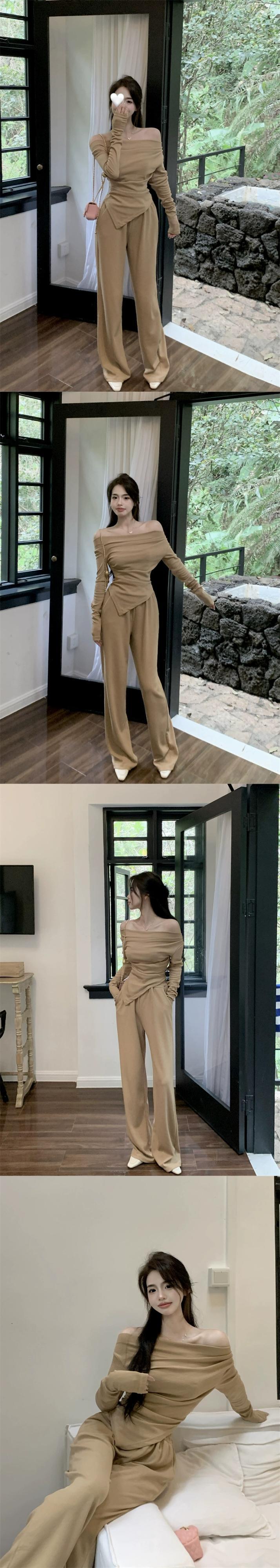 ホットガールインターネットセレブ 2023 ストリートスーツ女性のスリム Tシャツトップウエストパンツ 2 点セット秋スタイル オータム 秋物 nana86716451764 | modepoisson