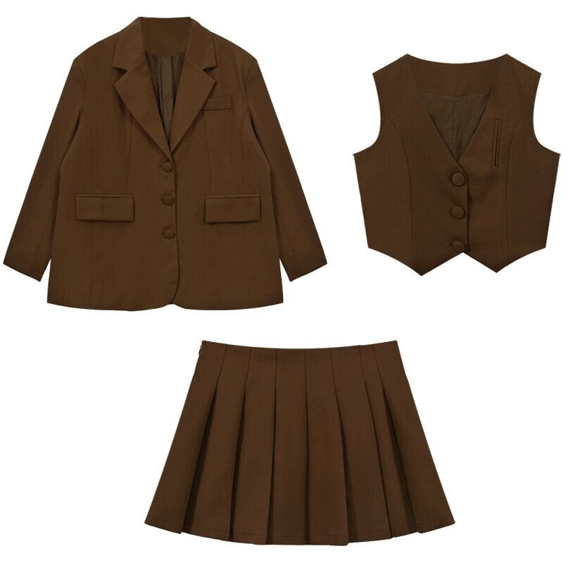 ベストブレザー 2023 インターネットセレブスタイルスーツハイウエストハーフレングスプリーツスカート気質 3 点セット女性秋 ハイウェスト オータム 秋物 nana15001090152 | modepoisson