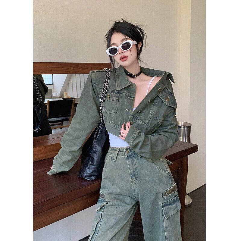 今年の人気ファッションスーツデニムジャケットオーバーオールワイドレッグパンツネットセレブ2023新作初秋ツーピースレディーススーツ オータム 秋物 nana48425260376 | modepoisson