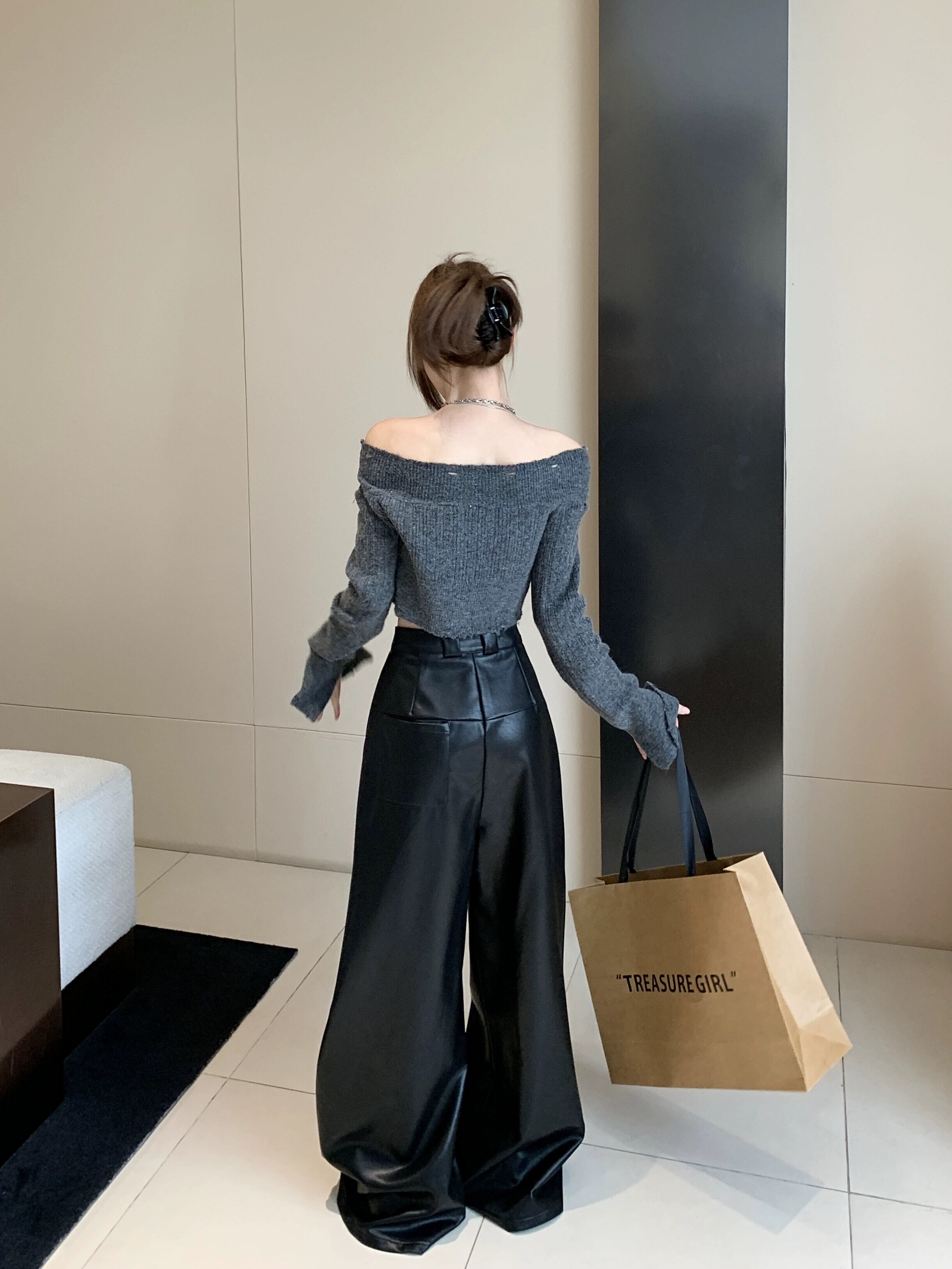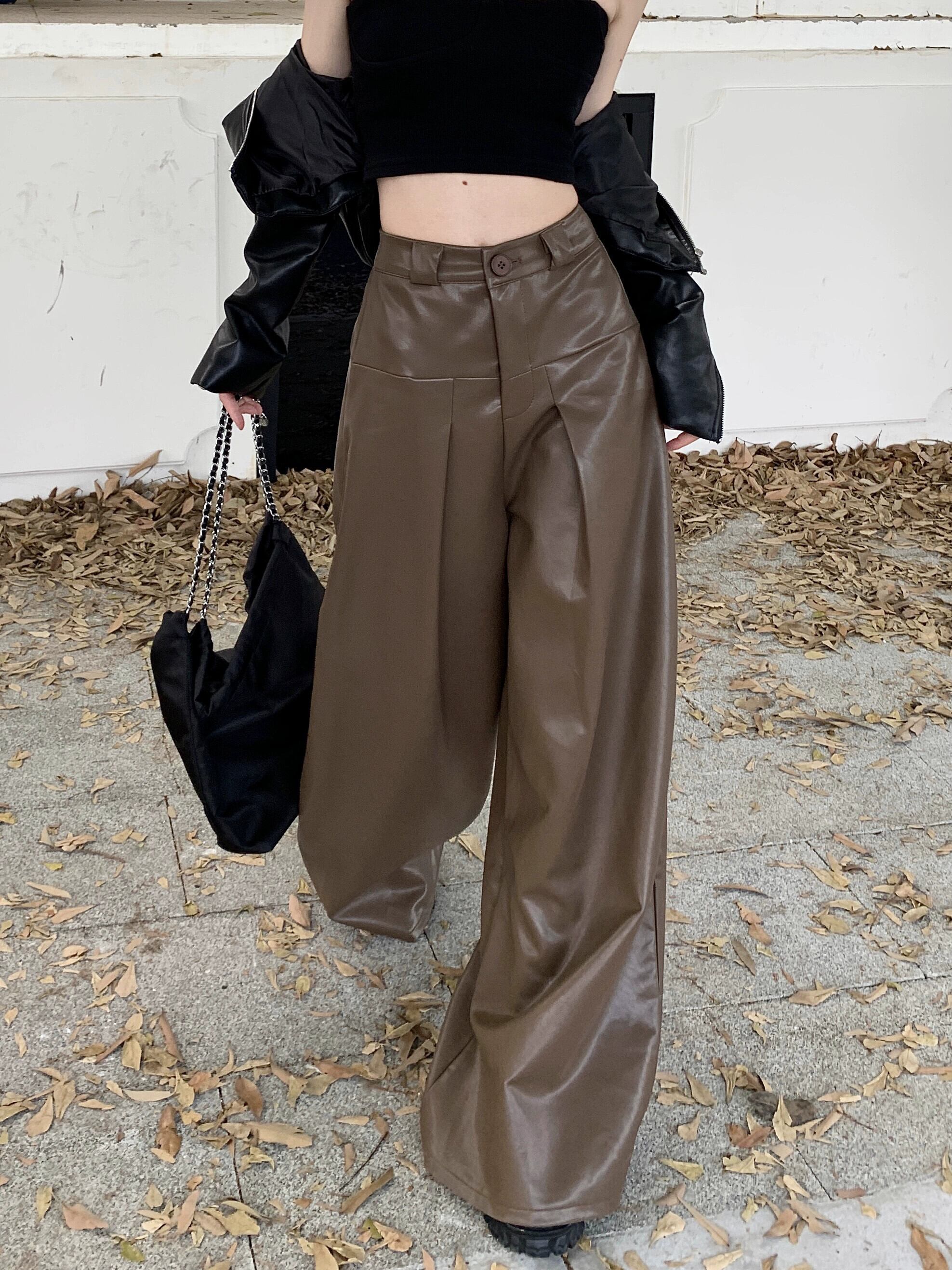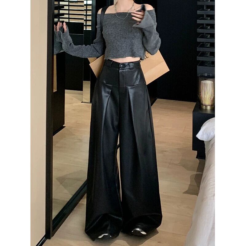 -ウエストワイドレッグカジュアルパンツルーズ痩身フロアレングスパンツ女性 2023 秋の新レザーパンツヨーロッパ - 販売パンツ オータム 秋物 ヨーロピアン nana16543620990 | modepoisson