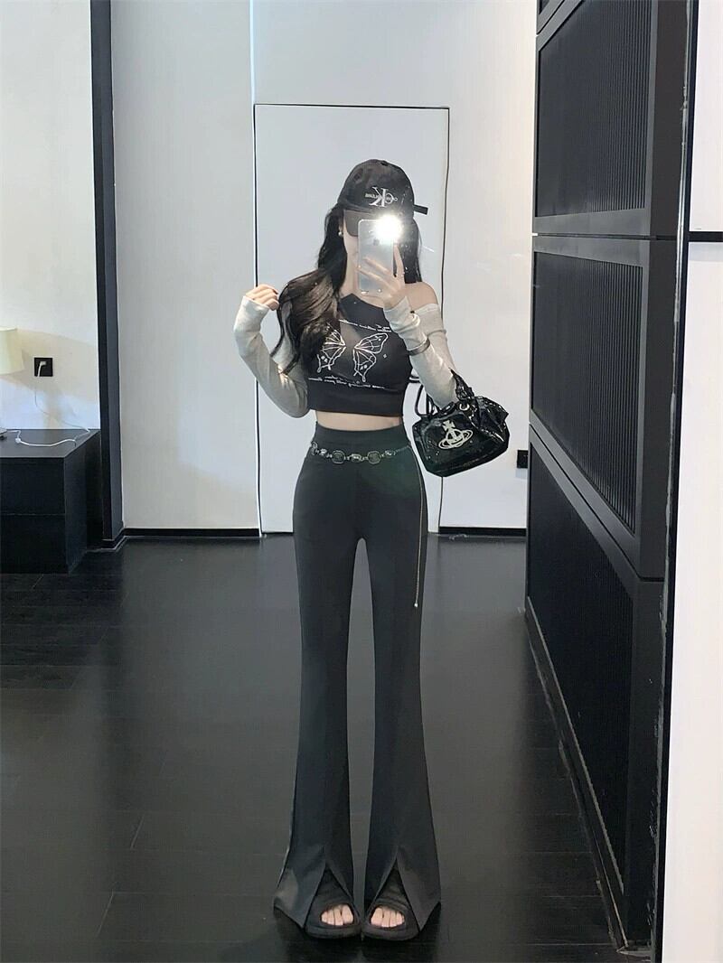色:ファッションウエストチェーン,黒いズボン,グレーのズボン
