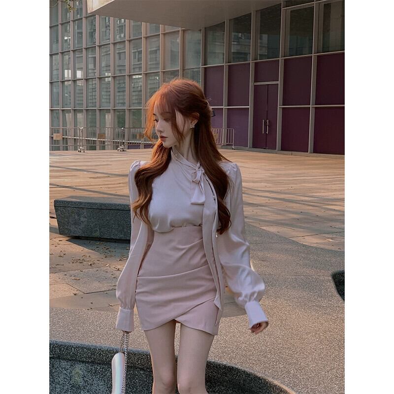 セレブトップス長袖シャツハイウエストヒップハーフスカート初秋のファッションスーツ女性 2023 新しいツーピースセット ハイウェスト ロング オータム 秋物 nana44346114358 | modepoisson
