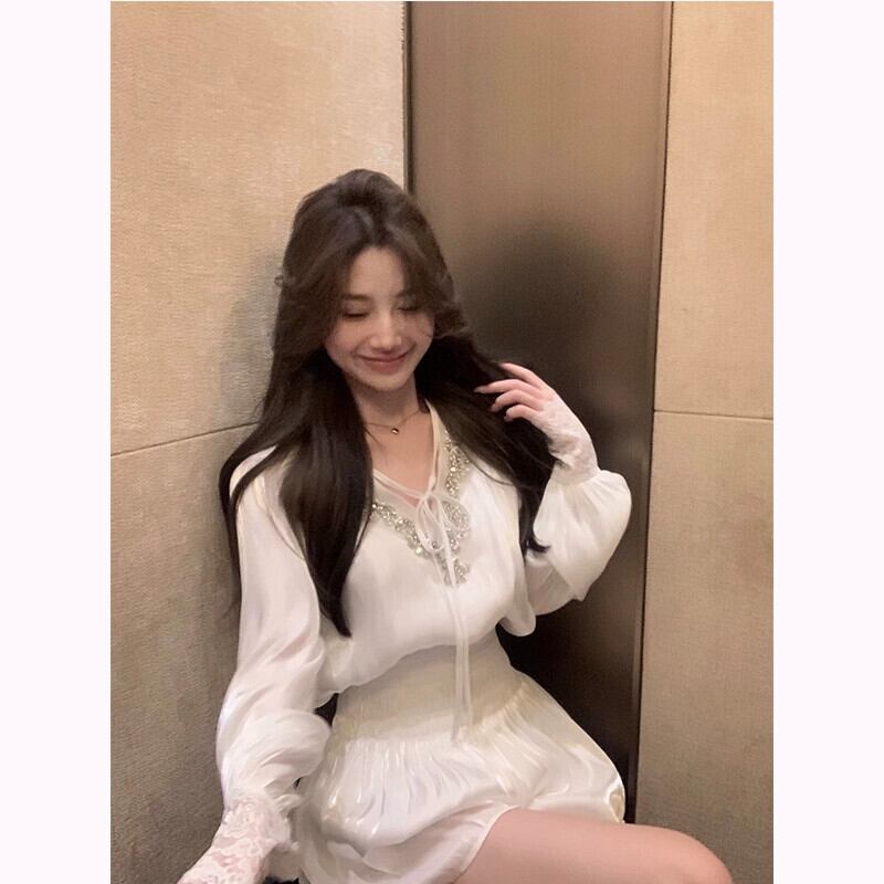 色:丈夫なラインストーントップ,ホワイトショーツ