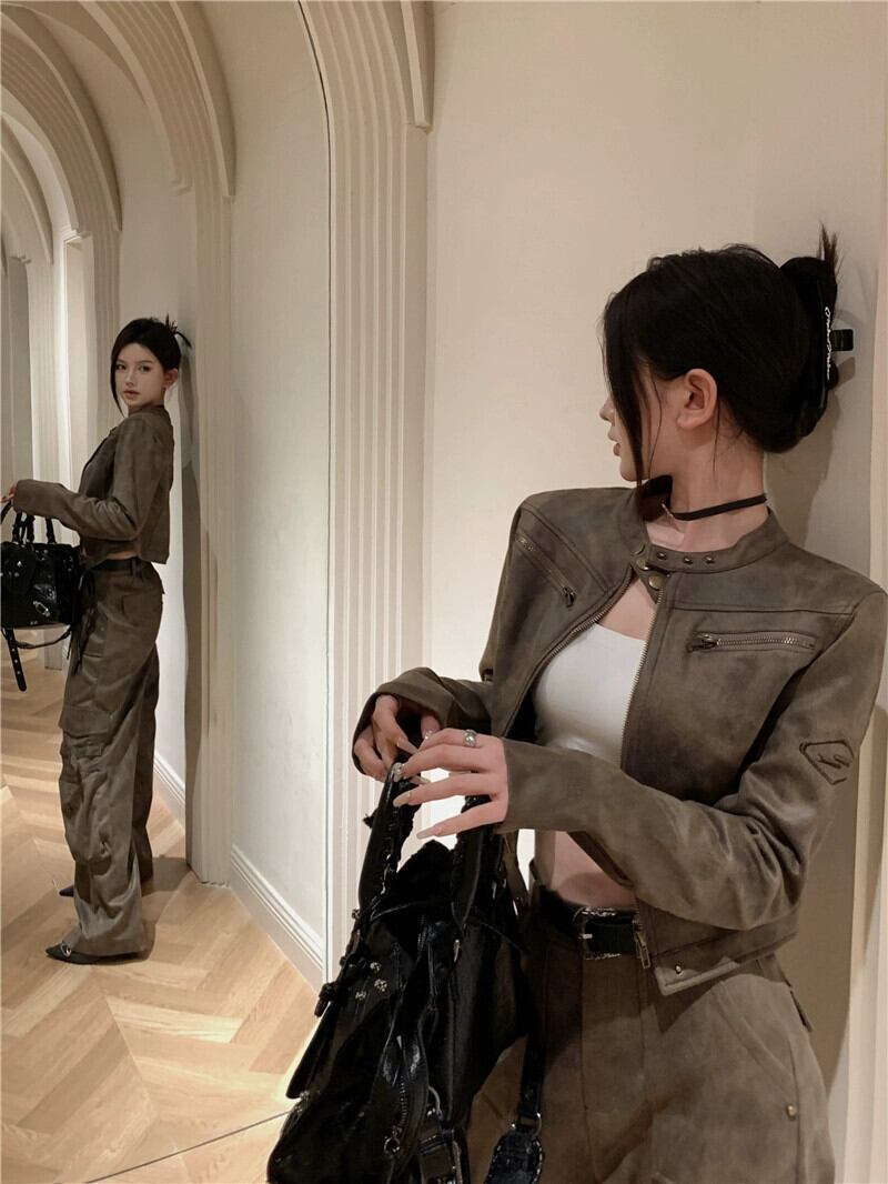 ストリートファッションスーツ香港スタイル長袖ジャケット女性初秋インターネット有名人 2023 新しいオーバーオールとカジュアルパンツ 2 点セット ロング オータム 秋物 nana98441844402 | modepoisson
