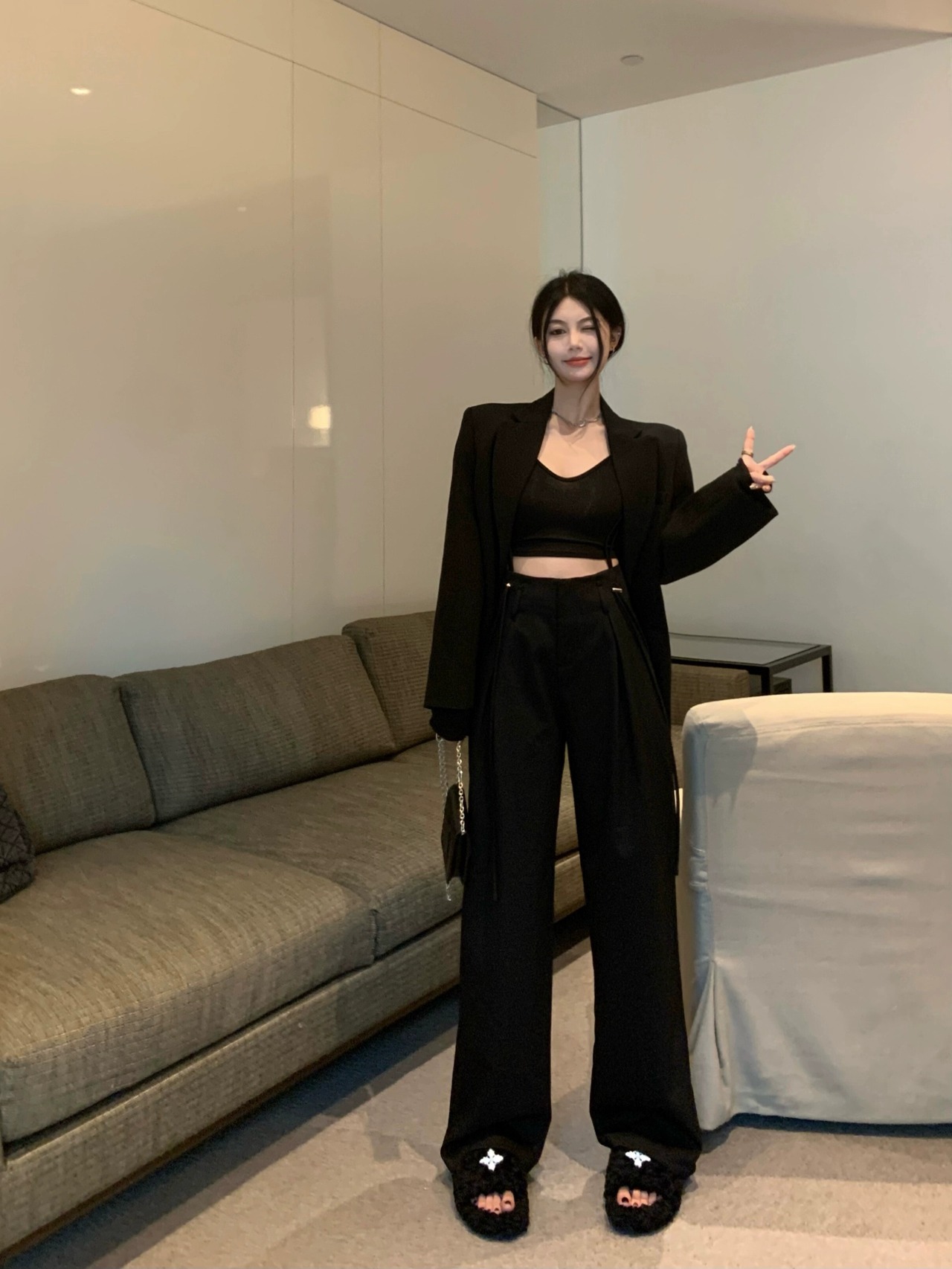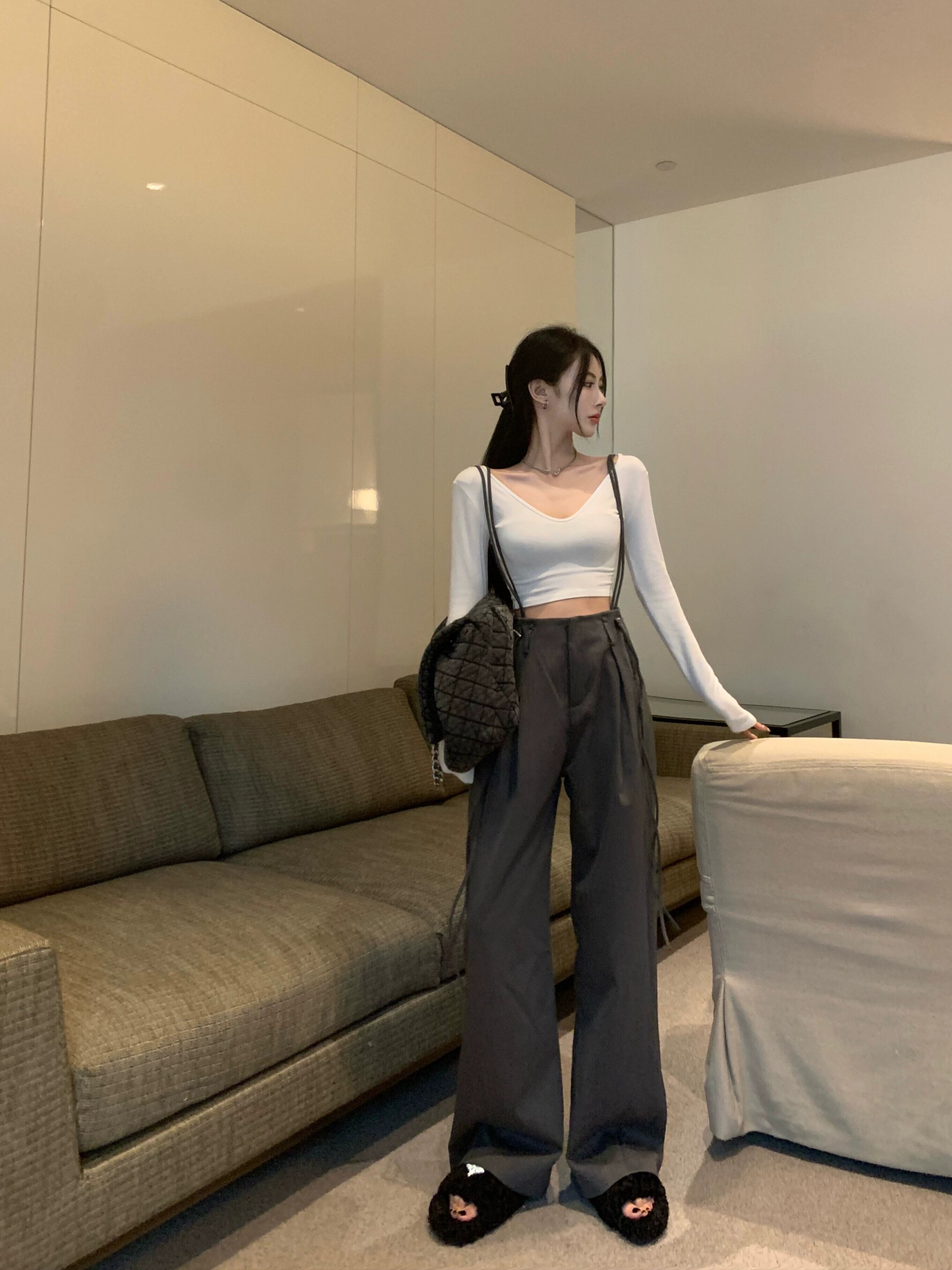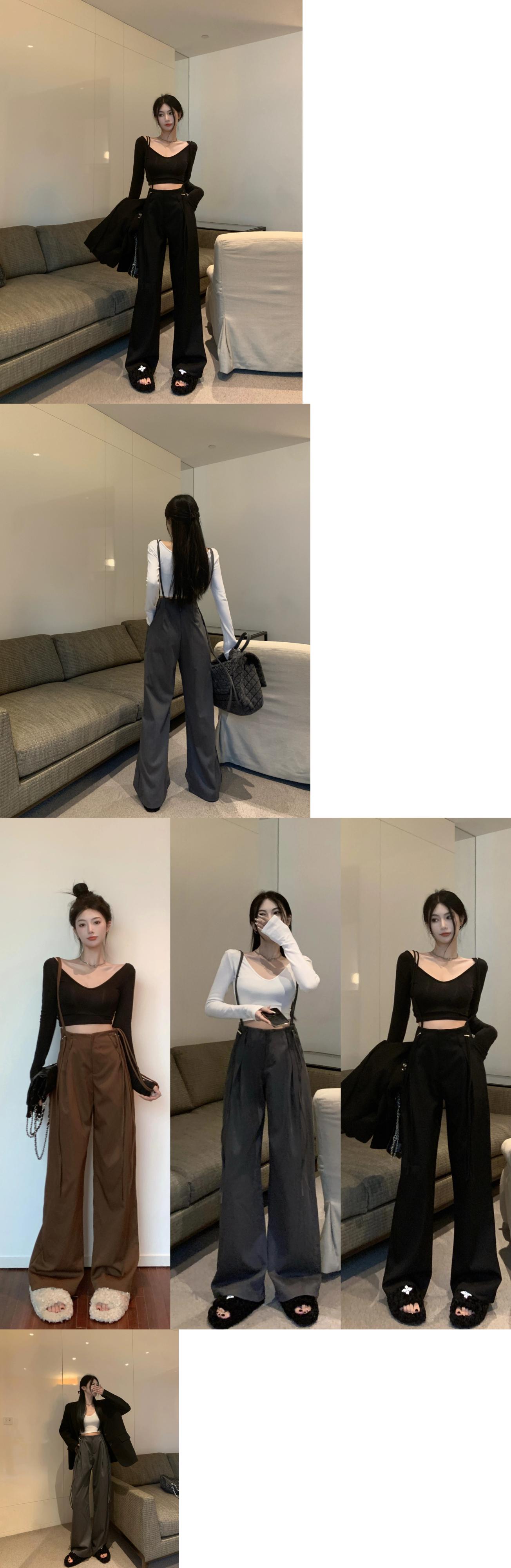 ウエストサスペンダーストレートルーズスーツカジュアルパンツ秋 2023 新スタイルドレープナローワイドレッグロングパンツ婦人服 オータム 秋物 ワイドパンツ nana49161614291 | modepoisson
