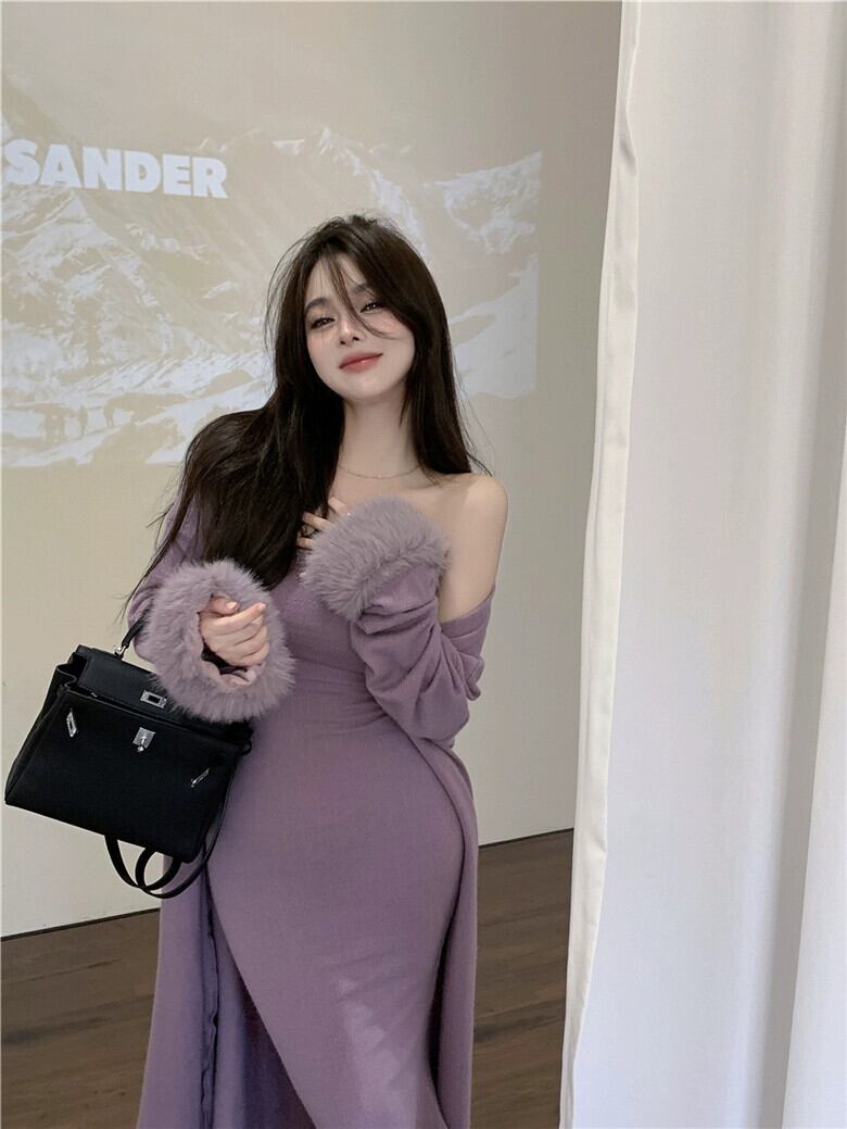 気質ニッチチューブトップスリムドレス長袖カーディガンジャケット塩スタイル軽くて洗練されたツーピーススーツ女性秋の新スタイル ロング オータム 秋物 nana96398183758 | modepoisson